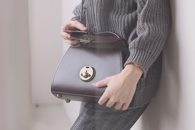 最令人喜愛的細節為正面黃銅色扣具的設計,以向上撥動方式輕鬆開啟,轉九十度便能鎖上,造型好看之外也與需求性平衡。另外搭配的是可拆式背帶,能在手提與肩背之間自由轉換,隨著穿搭與場合搭配;背面的小口袋,則回應生活中快速取物的需求。