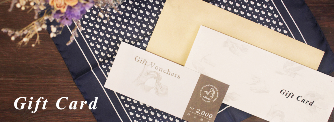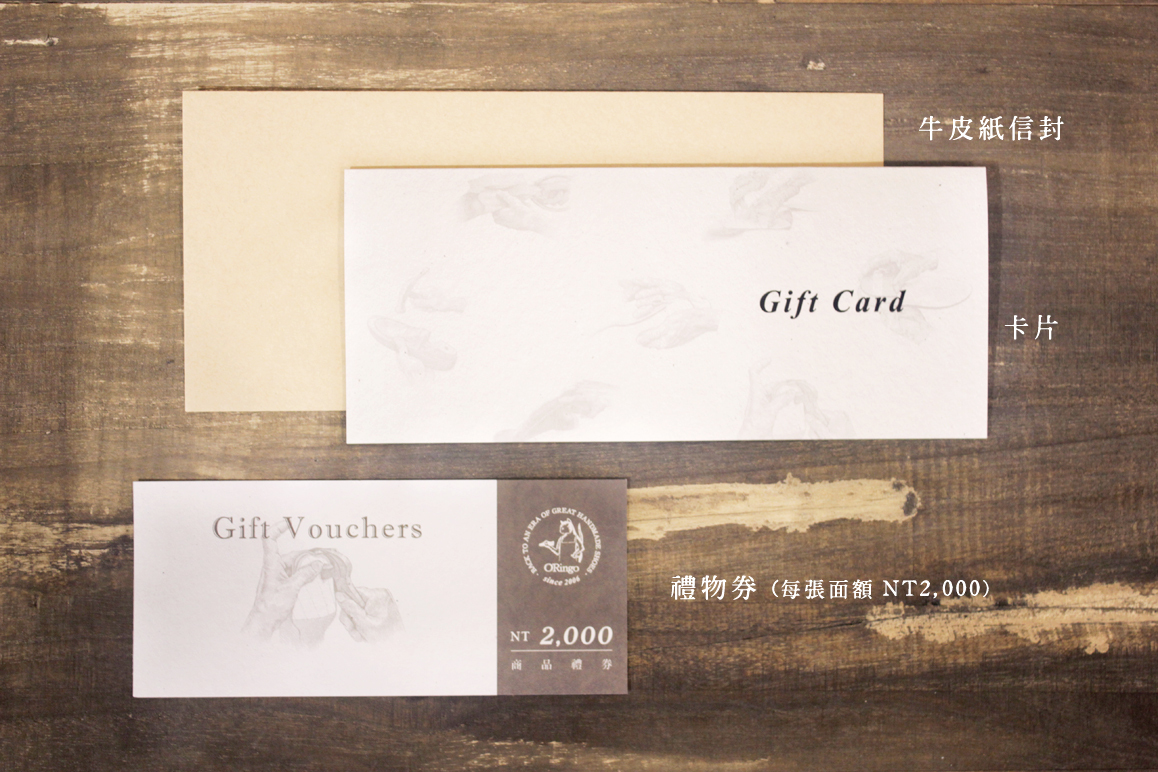 • You may use The Oringo's Gift Card to make purchases at any Oringo store: Zhongshan, Songshan Cultural and Creative Park, Dongmen and Taichung. The Oringo's Gift Card is not accepted in online shop.
