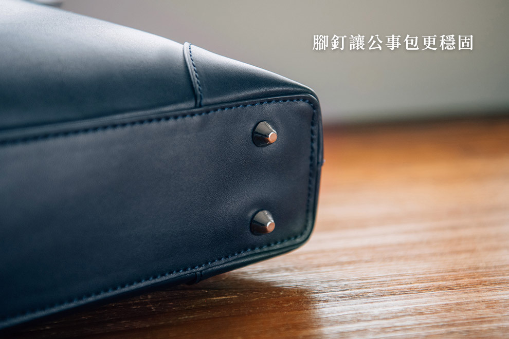 林果的公事包也保有傳統訴求,除了有腳釘可以穩定公事包之外,皮革與內裡之間還有一層PU,讓公事包用久了不會癱軟,更能保持文件的完整性,不會因為收納擠壓而產生摺痕。