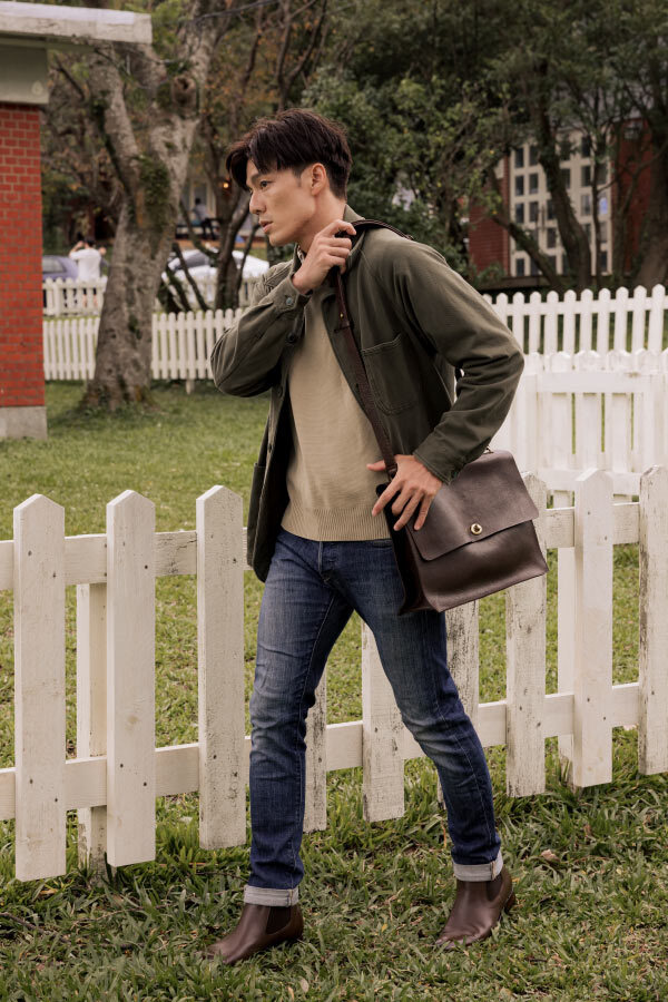 在林果的詮釋下,郵差包不只是工具,更是一件能陪伴生活、兼具風格的日常配件。