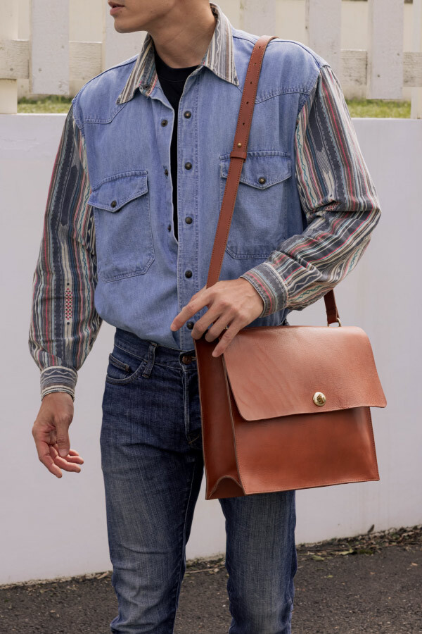 在林果的詮釋下,郵差包不只是工具,更是一件能陪伴生活、兼具風格的日常配件。