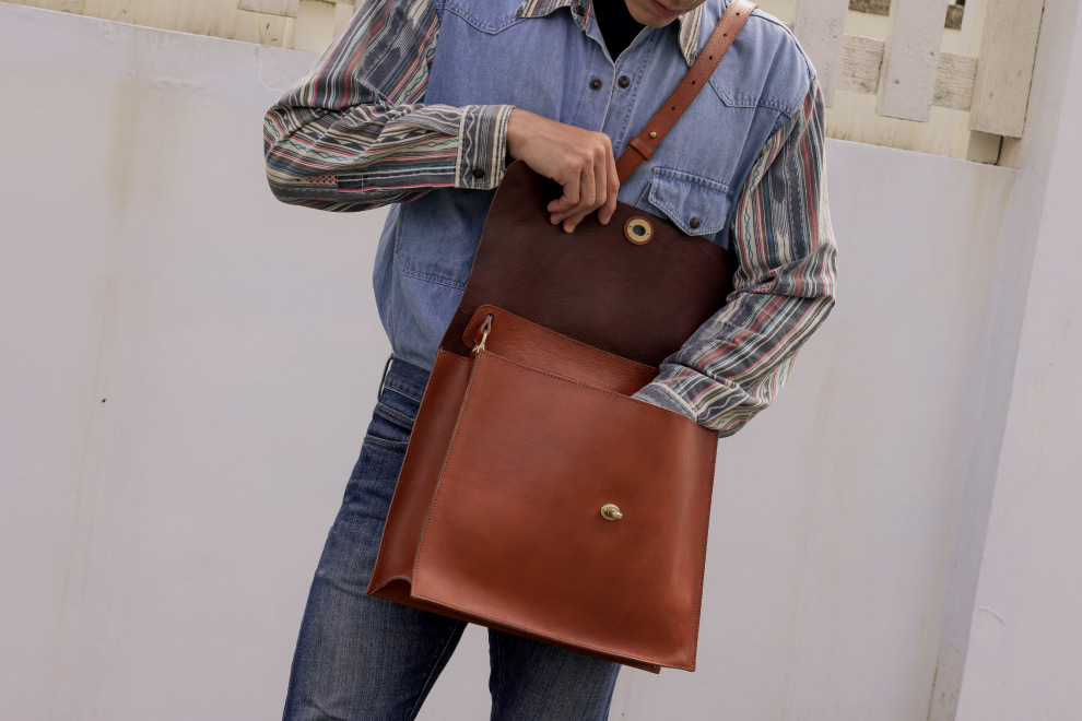 林果的郵差包,回到包款最純粹的精神,打造出兼具質感與實用的皮革郵差包。