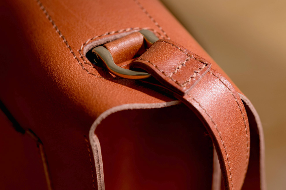 以半植鞣皮料呈現自然摔花紋理,再以簡潔的結構塑造輕鬆、耐看的休閒氣質;包身保留充足的收納層次,如內袋、隔層、筆電的位置等,滿足日常攜帶的實際需求。背帶則提供多種設計,透過不同長度與包蓋連結方式,展現截然不同的穿搭風格。