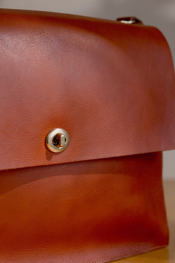 半植鞣皮的皮面帶有通透明亮的光澤,保有皮革的原始紋路,透過手工製包的過程中留下皺褶的痕跡,這種皮革所製成的托特包,會隨著時間慢慢產生變化,留下使用者的痕跡,行經每一處都會保留屬於使用者的記憶,最後展現出獨一無二的風貌。