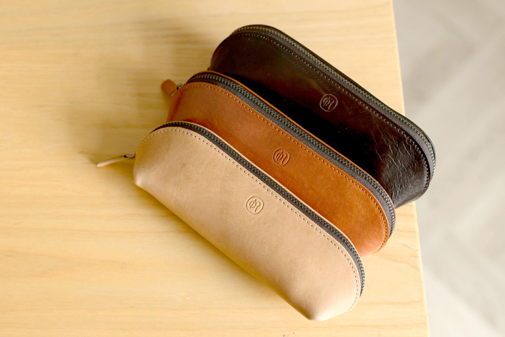 外型採用不繁複的設計,輕巧便攜,能夠裝基本的筆類和文具。植鞣革是最能體現時光的皮革,不易因上色而產生變化,保留最原始皮革的麼樣,會隨著使用時間留下使用者的印記,最後展現出獨一無二的風貌。