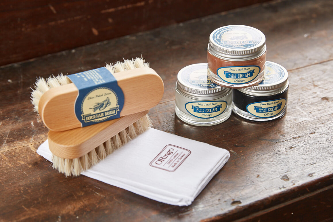 皮革的保養可以很簡單且紳士,選擇適合的保養品,先用鞋刷清潔表面,在用鞋乳滋潤皮革,最後再用擦拭布擦去多餘的油質,透過簡單的保養過程,不僅可以延長皮鞋壽命也能觀察皮革變化。