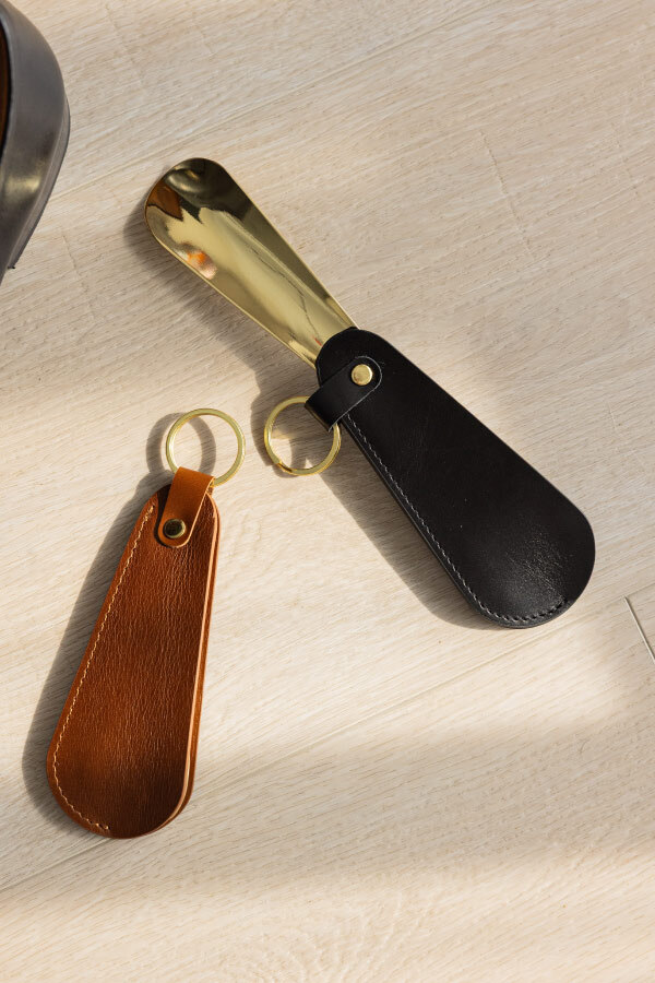 不同於一般常見的塑料或木紋材質,將皮革與鞋拔結合,正好呼應皮鞋的材質。