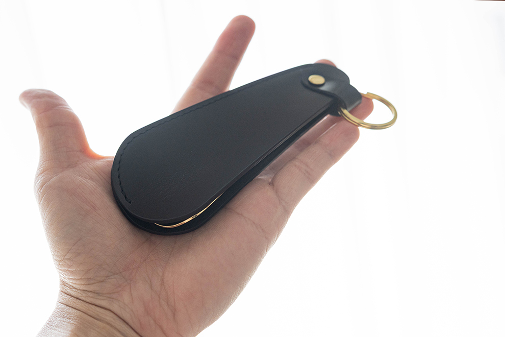 不同於一般常見的塑料或木紋材質,將皮革與鞋拔結合,正好呼應皮鞋的材質。鞋拔主要的內層結構為不鏽鋼,不易與空氣接觸氧化,耐用度提升;外層則油感皮革作為保護套,適中的尺寸方便隨身攜帶。