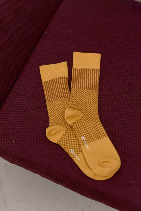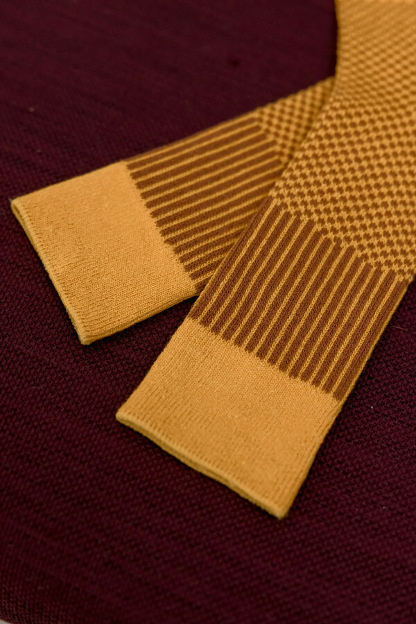 紳士襪是不可或缺的重要單品,不僅是讓穿搭更出眾的配件,更是體現得體與禮儀的關鍵細節。這款襪子以直條紋與格紋為基礎,透過緹花與色彩對比的設計,營造出交錯的網格效果,呈現立體而細膩的視覺層次感,繁複中顯露精緻,是紳士襪的絕佳典範。