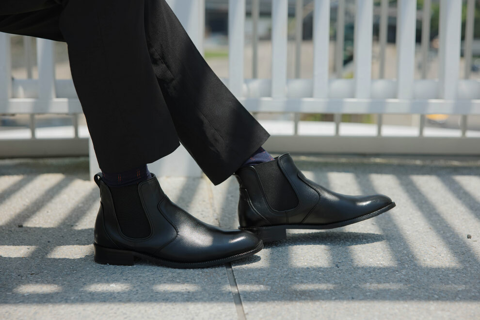 林果良品最受歡迎的靴款-卻爾喜靴,黑色是最受歡迎的色系。為了滿足想要穿著卻爾喜靴搭配西裝或上班的需求,鞋大底選擇黑色的,除了符合商務需求之外,也添了充滿個性的魅力。以經典卻爾喜靴(Chelsea)為本,沒有鞋帶束縛,鬆緊帶鞋口,穿著更不受拘束。