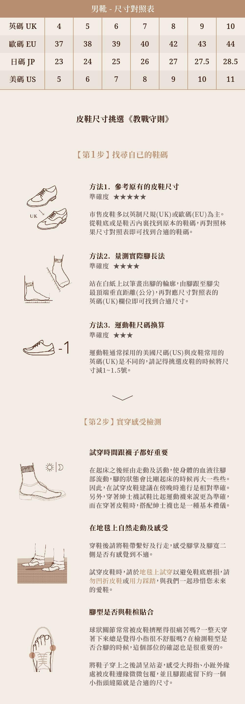 皮鞋的天皮(鞋底處的橡膠片)經過行走而自然磨耗,會影響到穿著感受、行走姿勢與皮鞋使用壽命。 林果良品的天皮約可穿著6至8個月,待天皮磨至剩下1/3時,我們提供免費更換服務乙次。 |