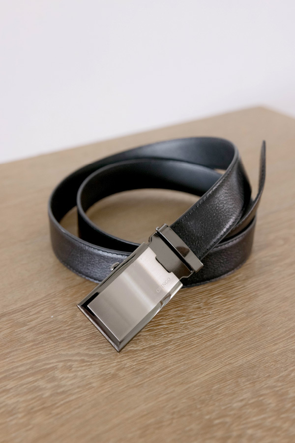 適當的寬度與基本黑色與深咖啡色,恰巧滿足搭配西裝的場合。板扣沒有多餘的圖形與大面積LOGO,簡雅的素面、線條十分低調,更突顯出質感與品味。