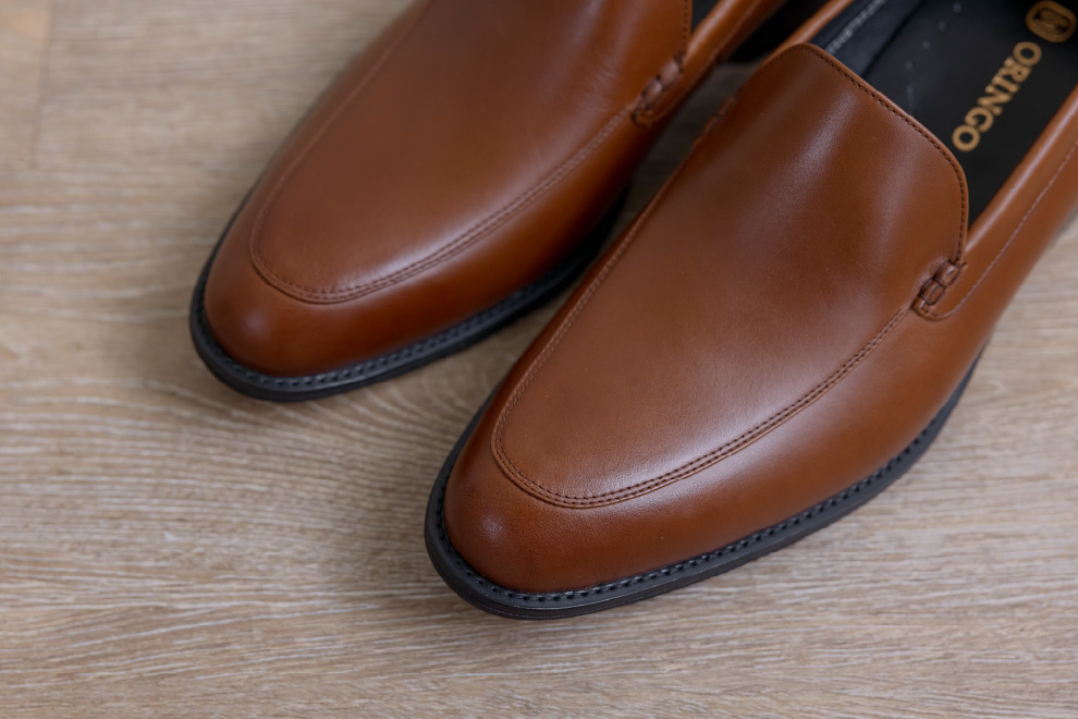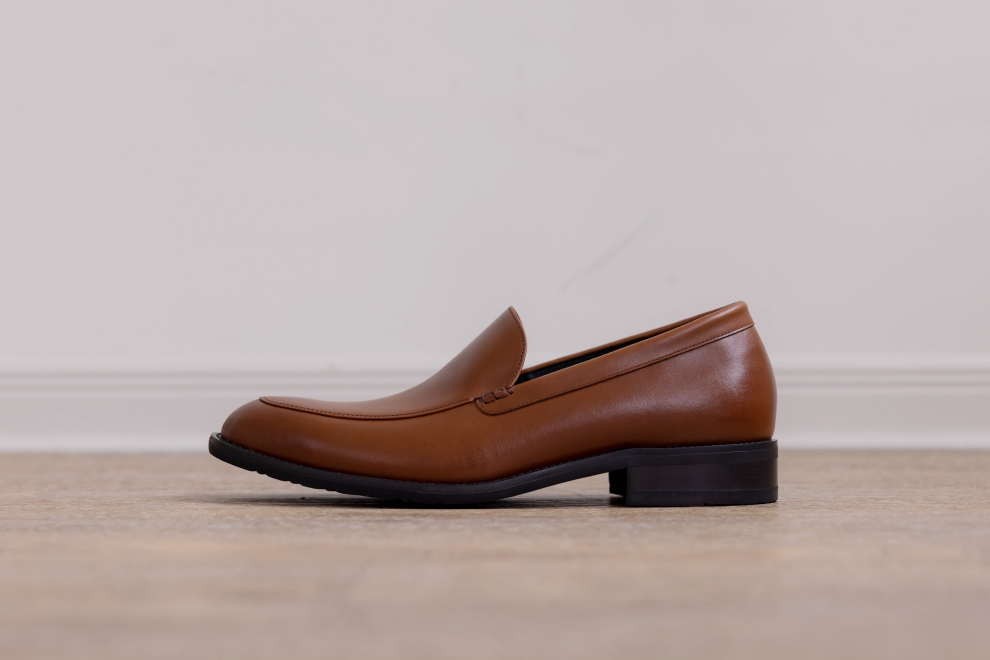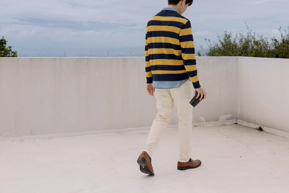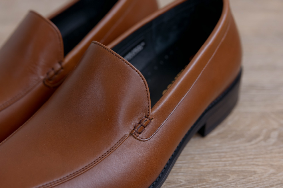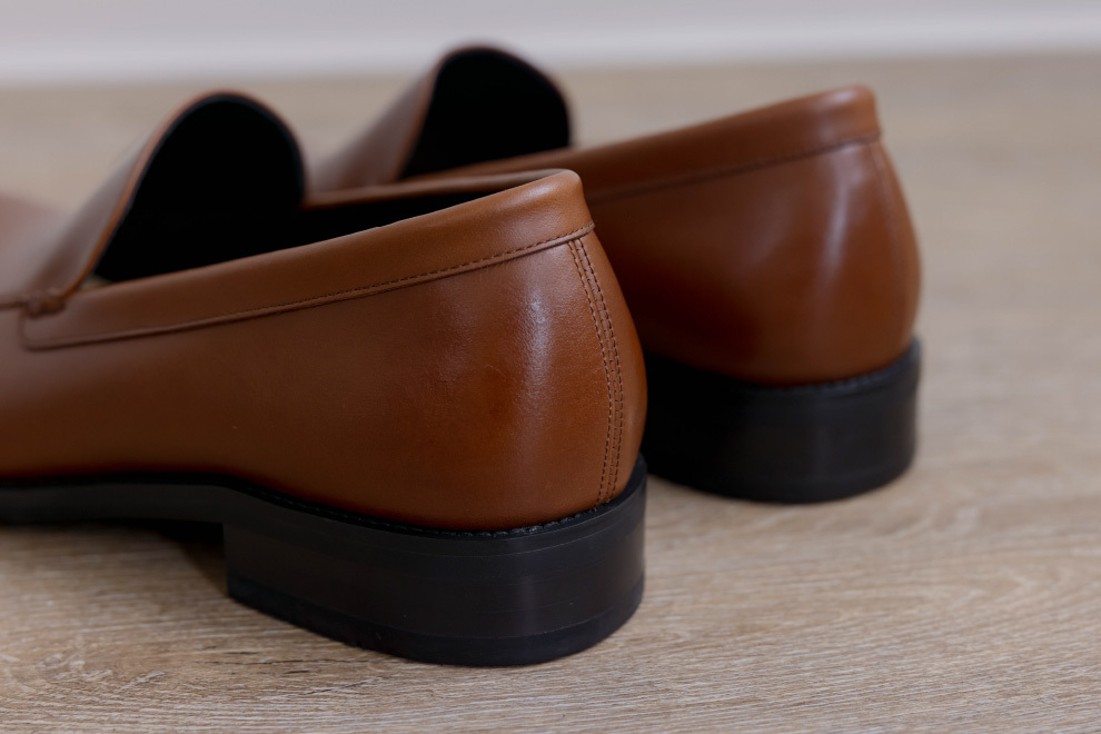 Slip on的定義為低筒無鞋帶的鞋子,最常見的款式稱為樂福鞋或拖鞋。鞋面以U-tip為概念設計,以雙車線的方式呈現,顯得細緻之外,還可以加強耐用性,讓鞋子接合更加牢固。側面的手縫馬克線細節,由於馬克線比較粗硬,更牢固美觀。使用皮革完整包覆鞋緣,穿著時不會因為行走摩擦而傷到足部。用一雙從上班到休假都適合穿著的皮鞋,在穿搭上做各種風格的詮釋。