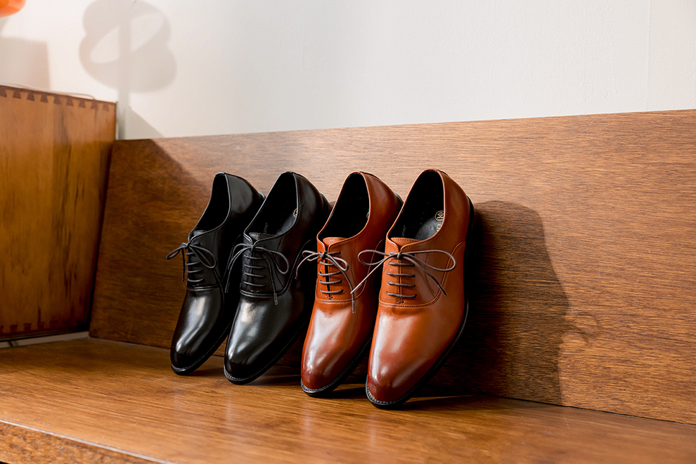 基本牛津鞋,無飾(Plain toe)顧名思義就是沒有任何的裝飾,可以融入任何搭配,在任何商務場合都能穿著的皮鞋,成為鞋櫃中不可或缺的配角。
