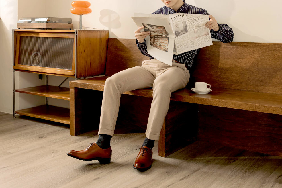 基本牛津鞋,無飾(Plain toe)顧名思義就是沒有任何的裝飾,可以融入任何搭配,在任何商務場合都能穿著的皮鞋,成為鞋櫃中不可或缺的配角。
