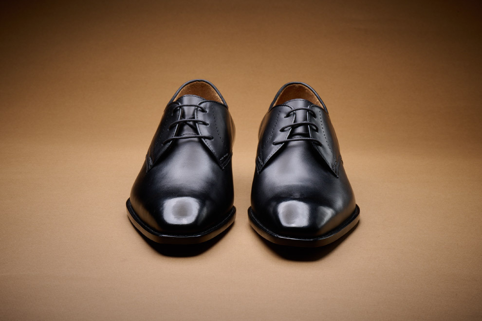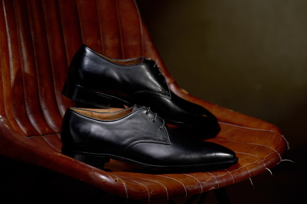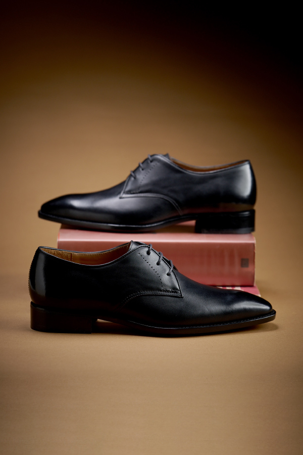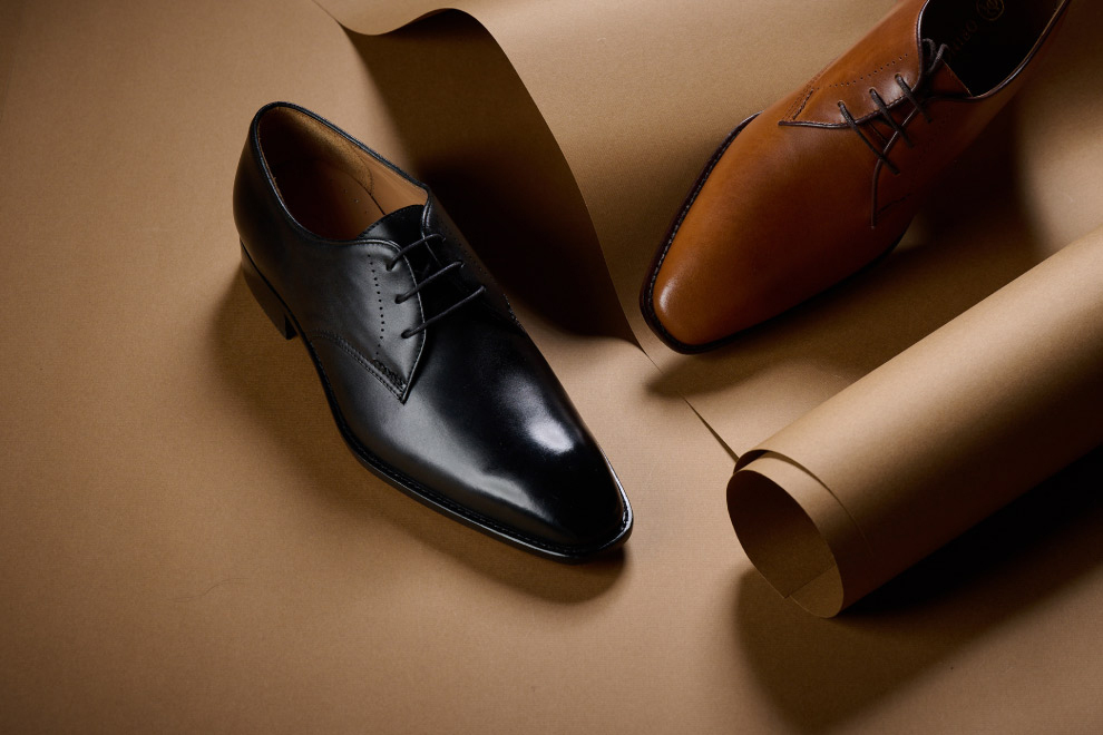 有別於傳統對方頭的印象,從輪廓分明的杏仁頭型去延伸,保留兩側的空間,增加腳趾的伸展空間,降低壓迫感,更提升舒適度;讓腳型較寬厚的台灣男士,藉由鞋型及線條達到修飾腿型比例的效果。德比鞋最大的特色是開放式鞋襟,腳背更加舒適。細膩的設計不會太過張揚,上班穿著也很適合。