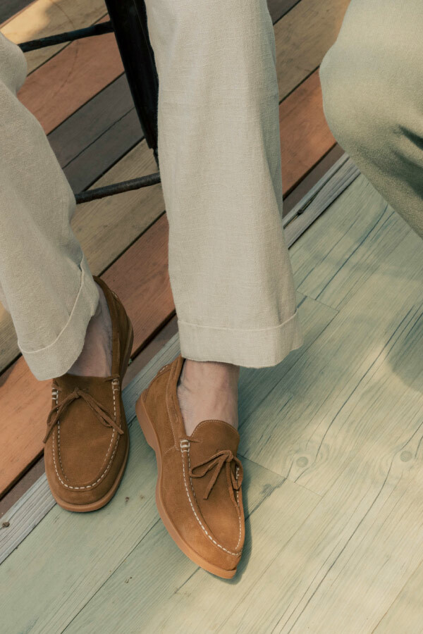 2024年春末初夏,林果良品推出全新休閒樂福鞋,為您的旅行增添精緻品味,伴您走過旅途中的每段回憶。使用手工英式馬克縫來彰顯工藝,選用了具備出色防水功能的3M防撥水反毛皮,高彈性橡膠大底貼合腳底彎折,為您的步履增添舒適感,同時具備耐穿性,延長鞋履的使用壽命。無論是海邊漫步還是城市休閒,帆船鞋都能完美融入各種場景,展現您的品味和悠閒態度,讓每次旅行都成為一段品味與舒適並重的旅程。