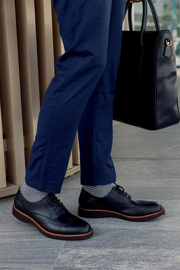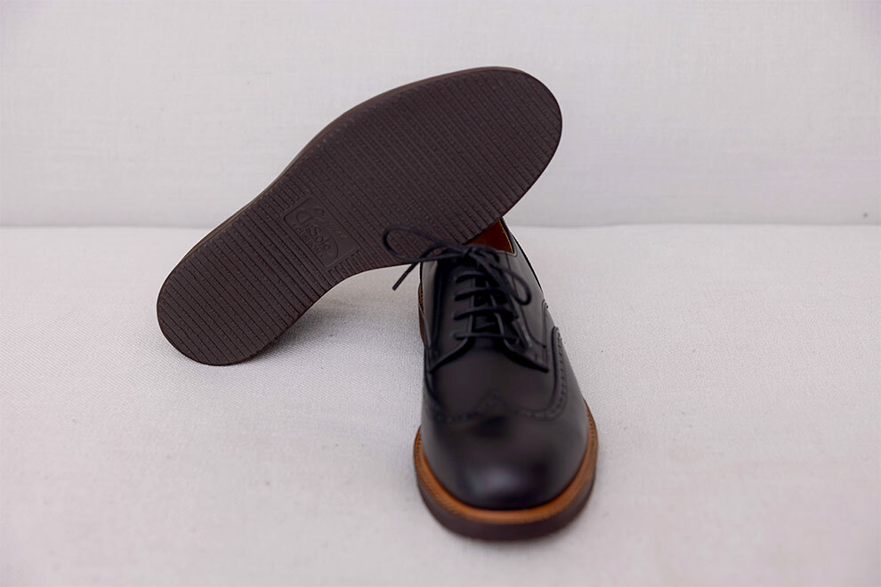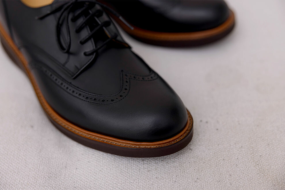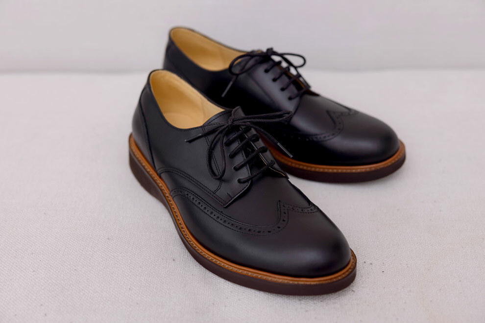 現代休閒鞋追求機能與時尚兼具,林果選用 Dr. Sole #3060 EVA 混合橡膠大底,提供輕量化、耐磨性與波浪紋設計,讓鞋款具備舒適與耐用性。雕花翼紋(Brogue)與跳色真皮沿條(Welt)則增添皮鞋的工藝美感,展現經典與現代的完美融合。雕花細節不僅彰顯皮鞋的歷史韻味,更提升了鞋款的層次感,在日常與商務場合中都能優雅自如。