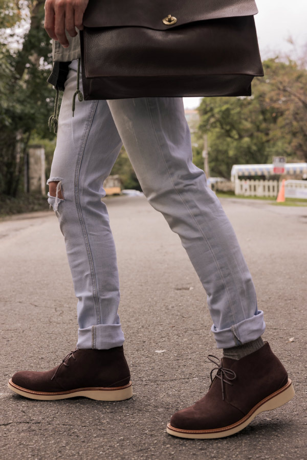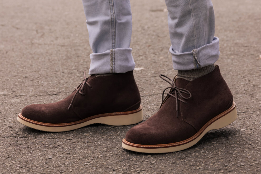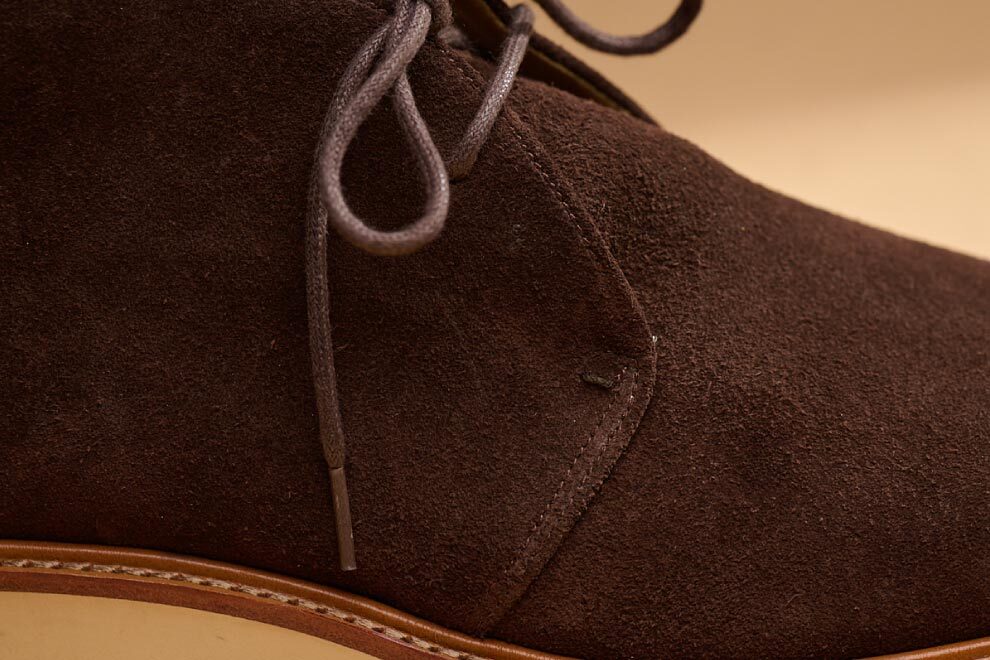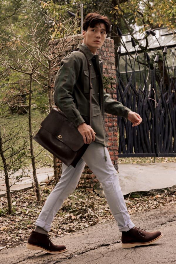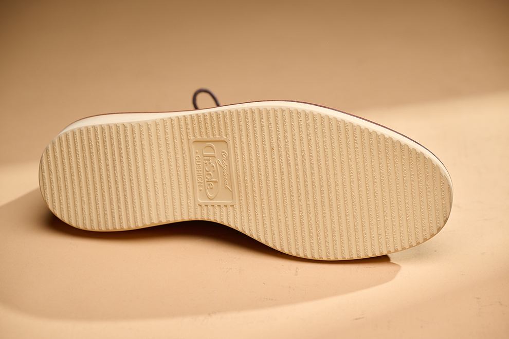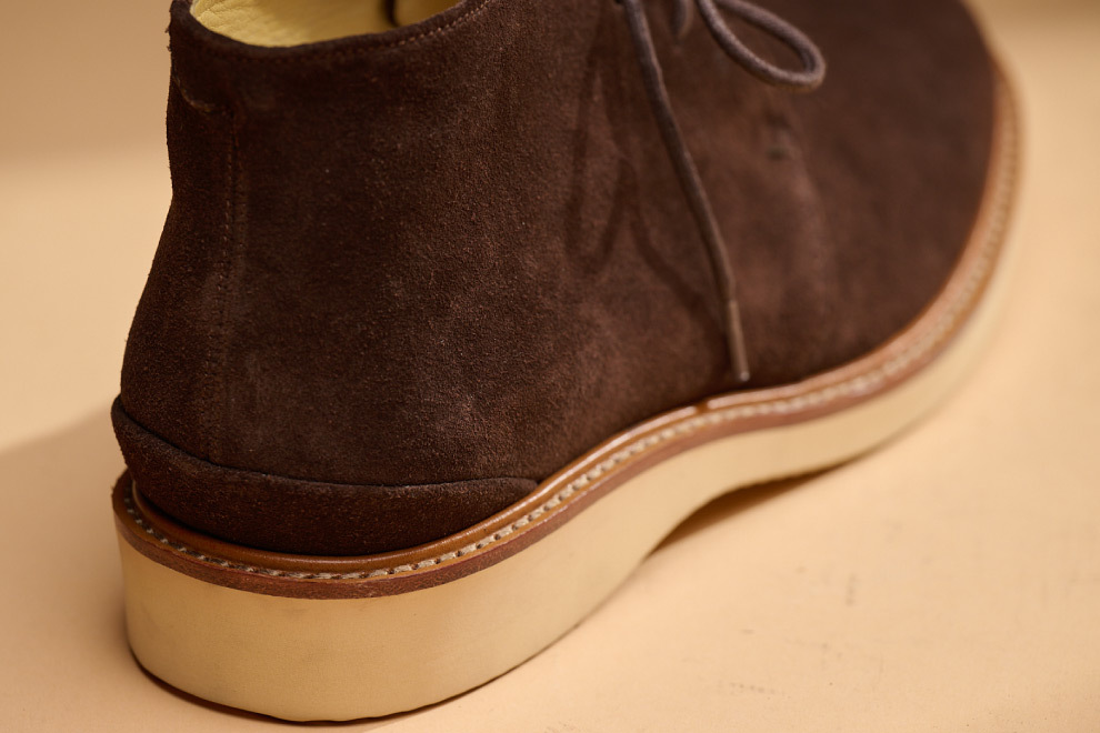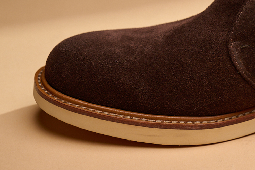 現代休閒鞋追求機能與時尚兼具,林果選用 Dr. Sole #3060 EVA 混合橡膠大底,提供輕量化、耐磨性與波浪紋設計,讓鞋款具備舒適與耐用性。經典的沙漠靴,在鞋襟的部位逢上同面色的馬克線,從經典中凸顯出不一樣的設計,搭配撞色效果的沿條色系讓款式在經典中有另類的與眾不同。