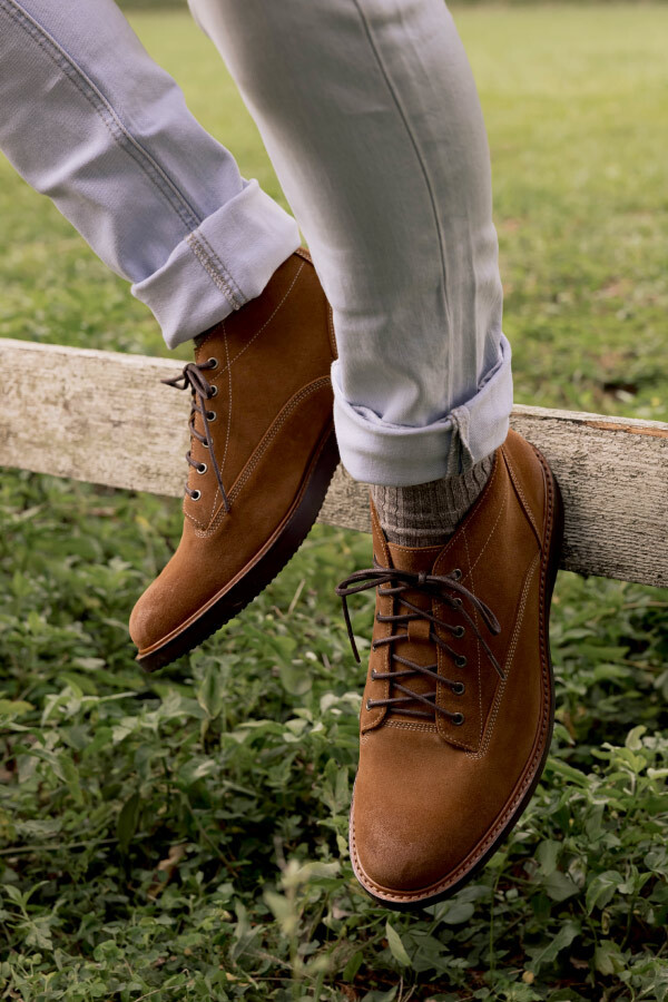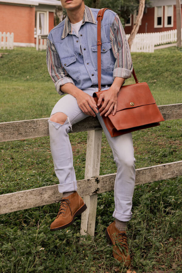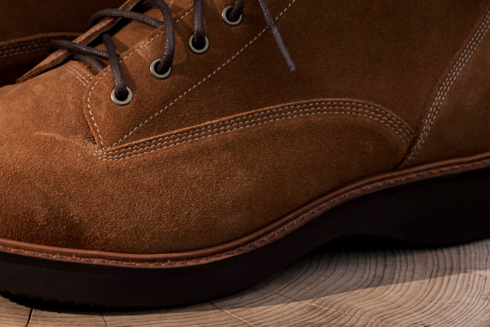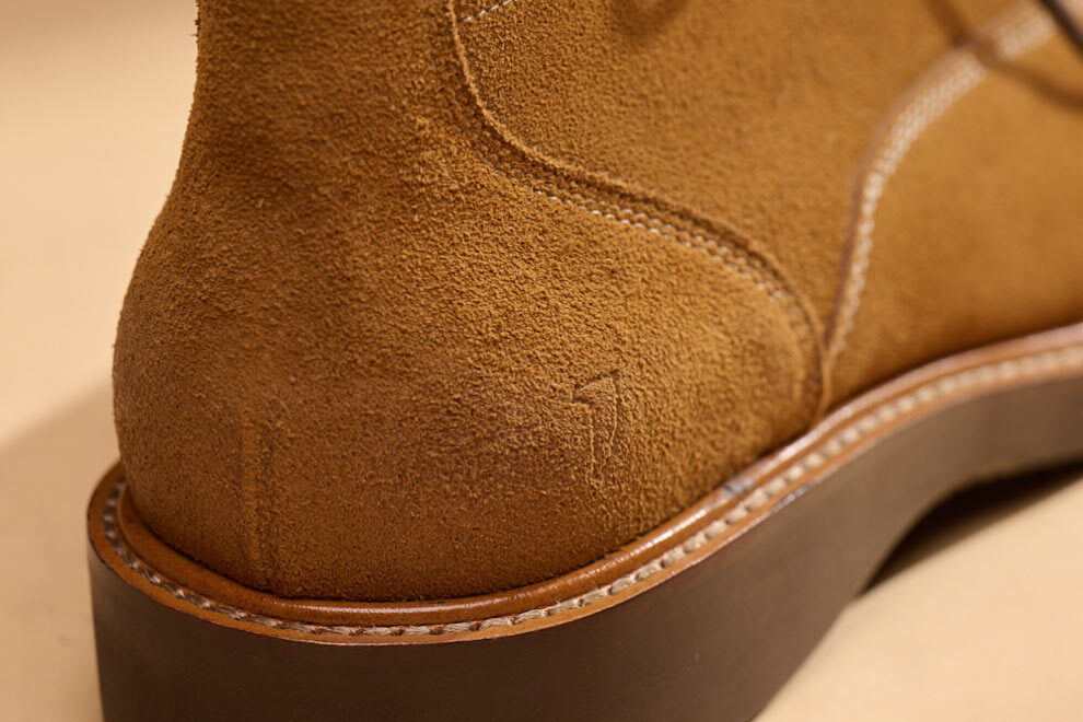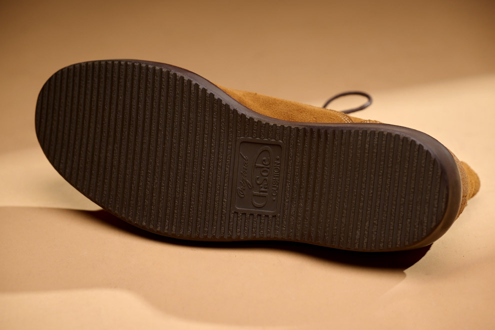 現代休閒鞋追求機能與時尚兼具,林果選用 Dr. Sole #3060 EVA 混合橡膠大底,提供輕量化、耐磨性與波浪紋設計,讓鞋款具備舒適與耐用性。以伐木工靴為靈感,結合林果工作靴的紳感概念,重新演繹工作靴款的樣貌。保留經典三條車線邊飾,雖然是以踝靴為設計,但鞋身向上延伸的效果,能夠修飾穿搭上的比例。