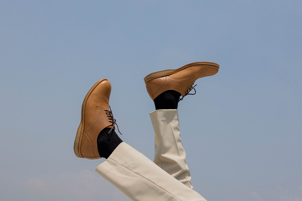 德比鞋是正式與休閒兼併的紳士鞋款,我們將德比鞋的鞋面與林果經典的休閒鞋楦及大底做結合,將兩者做完美的融合。經典黑呈現沉穩的印象,大底以深棕色沿條來展現深度內涵;而蜜棕色的蠟感皮隱隱的霧感漸層,讓男鞋也有柔和溫暖的面貌。配上全素面鞋身,以同色系的縫線勾勒輪廓,踏實而不張揚的存在。