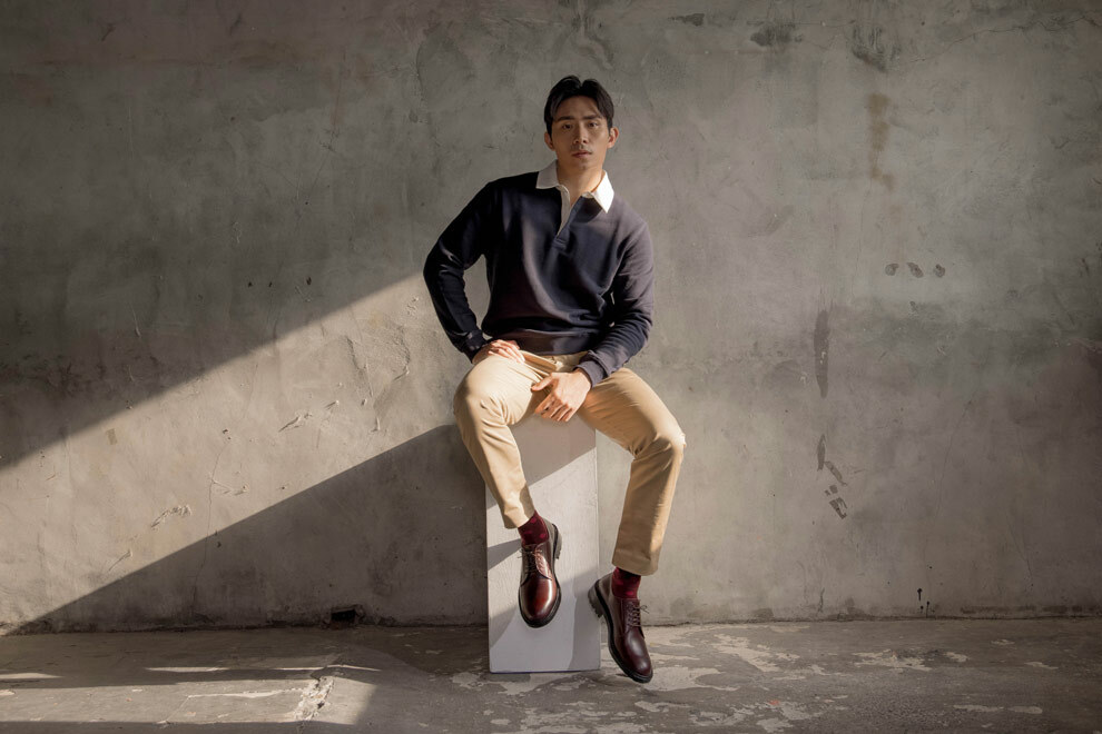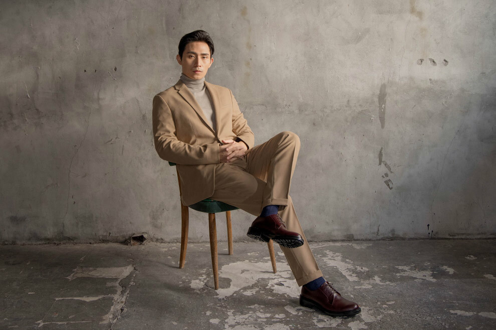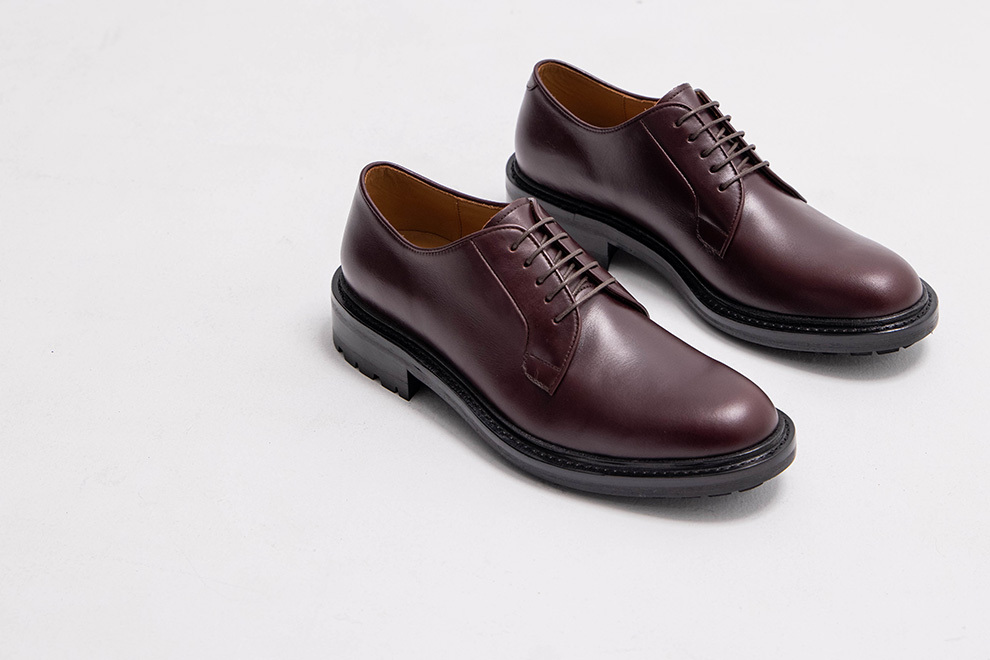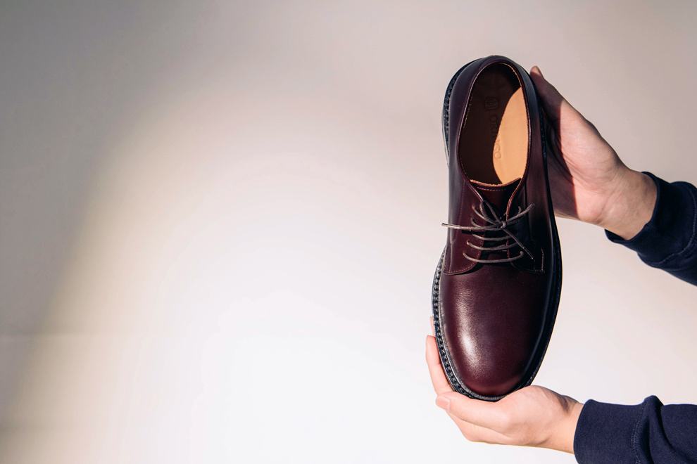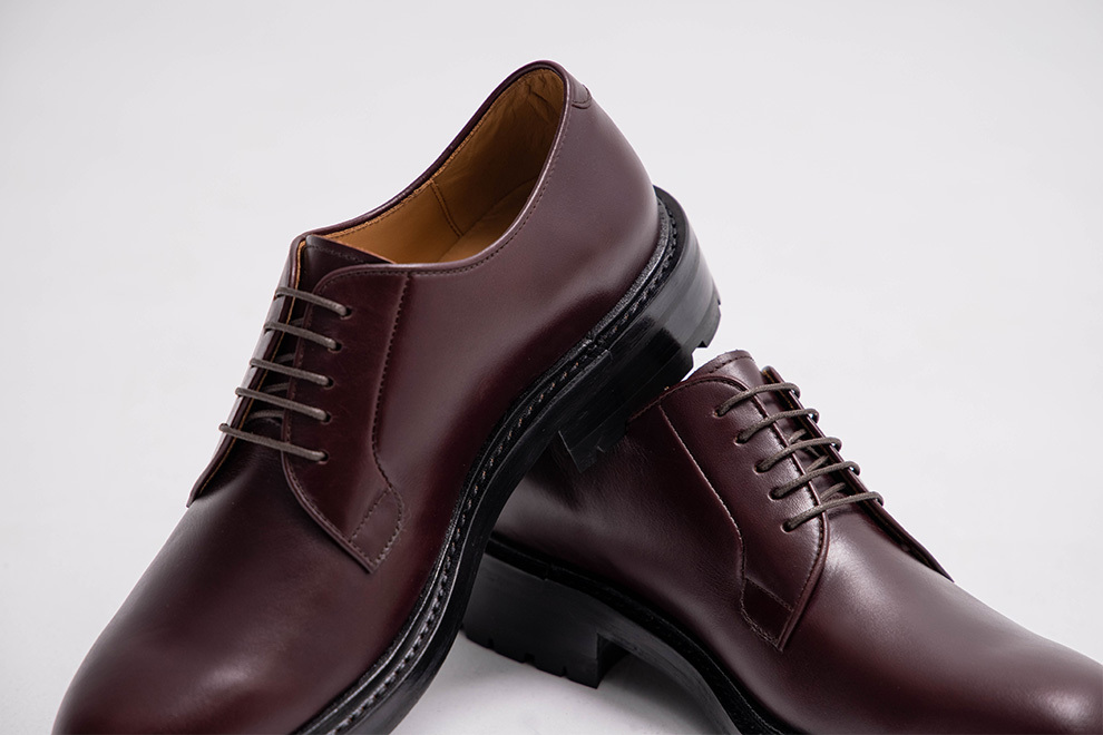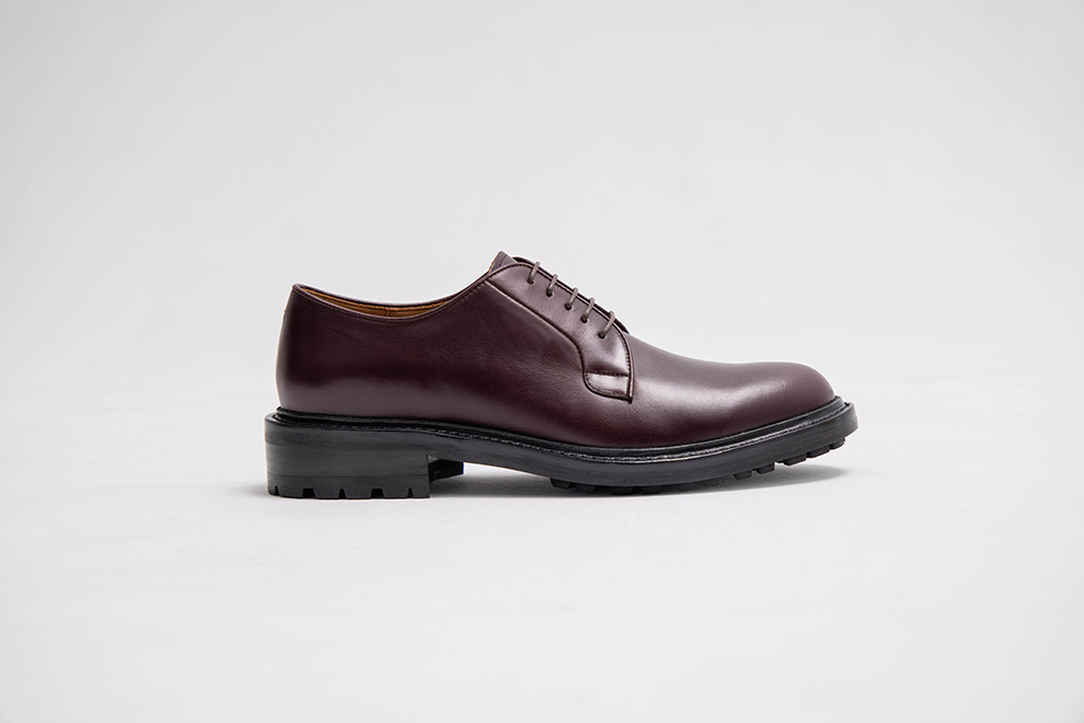 與過去的紳士皮鞋不同,林果將經典的布呂歇爾(Blucher)與橡膠雷根底(Lug sole)結合,重新定義皮鞋在男裝上的詮釋方式。全新開發的楦頭,休閒圓潤的鞋頭延伸到腰部展現「寬收到窄」,讓鞋型不會顯得笨重,反而多一分優雅。採用厚實的油感皮料,體現挺拔;後處理僅以鞋乳整雙皮面均勻拋塗,色澤自然且內斂。