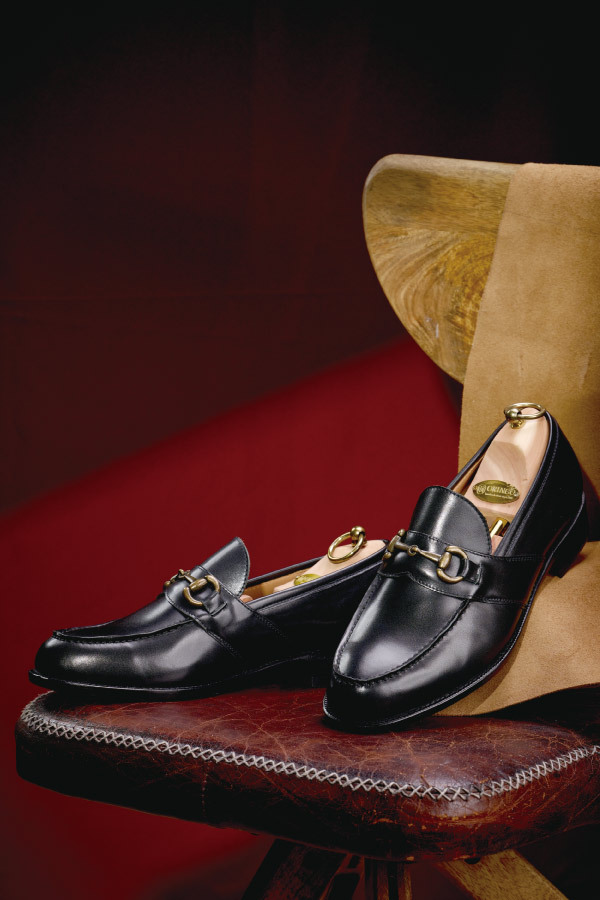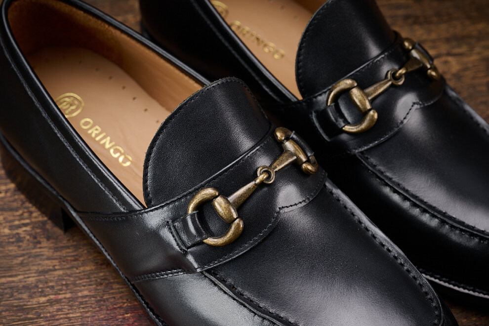 馬銜扣樂福鞋最早誕生於1950年代,由義大利精品品牌所推出。林果良品以台灣工藝為基礎,重新詮釋這項經典。保留金屬飾扣所象徵的洗鍊氣質,並選用青古銅色馬銜扣作為細節亮點,展現更內斂的風格表現。鞋面上的「馬克縫」也是重點特色。一雙鞋至少需費時一小時以上縫製,工序繁複。