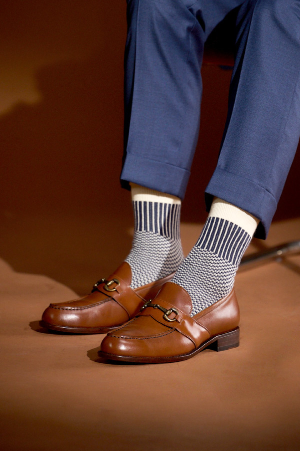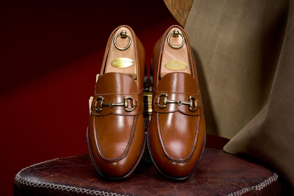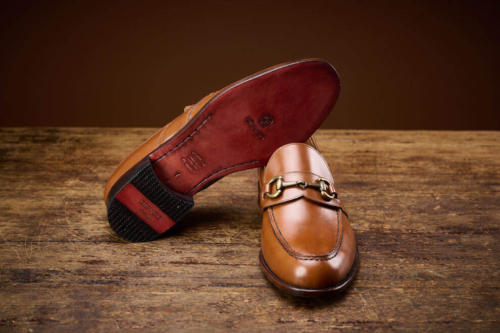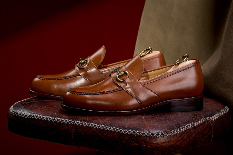 馬銜扣樂福鞋最早誕生於1950年代,由義大利精品品牌所推出。林果良品以台灣工藝為基礎,重新詮釋這項經典。保留金屬飾扣所象徵的洗鍊氣質,並選用青古銅色馬銜扣作為細節亮點,展現更內斂的風格表現。鞋面上的「馬克縫」也是重點特色。一雙鞋至少需費時一小時以上縫製,工序繁複。