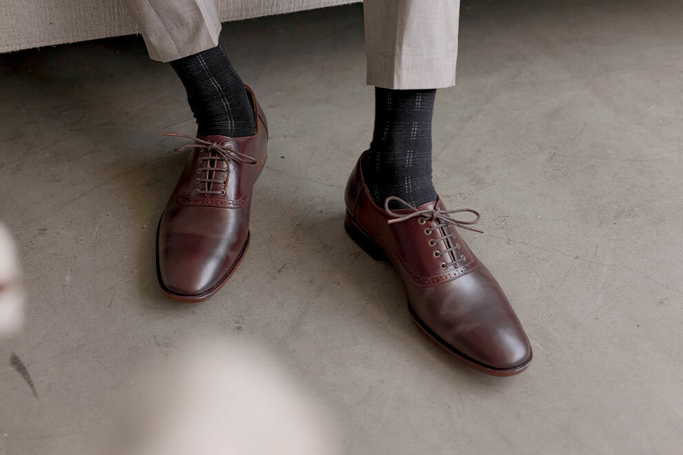 林果良品經典皮鞋之一,以復古的鞍部牛津鞋型為雛型,利用不同階段但相同色系的皮料,小牛皮與胎牛皮的細微差異,為皮鞋帶來低調的設計質感,雖是拼接卻完全不顯突兀,圓頭楦型,讓牛津皮鞋穿起來同樣舒適,也同時兼顧正式與休閒的穿搭選擇。搶眼的酒紅與咖啡配色,推薦給喜歡特殊設計、結婚需求的紳士型男。