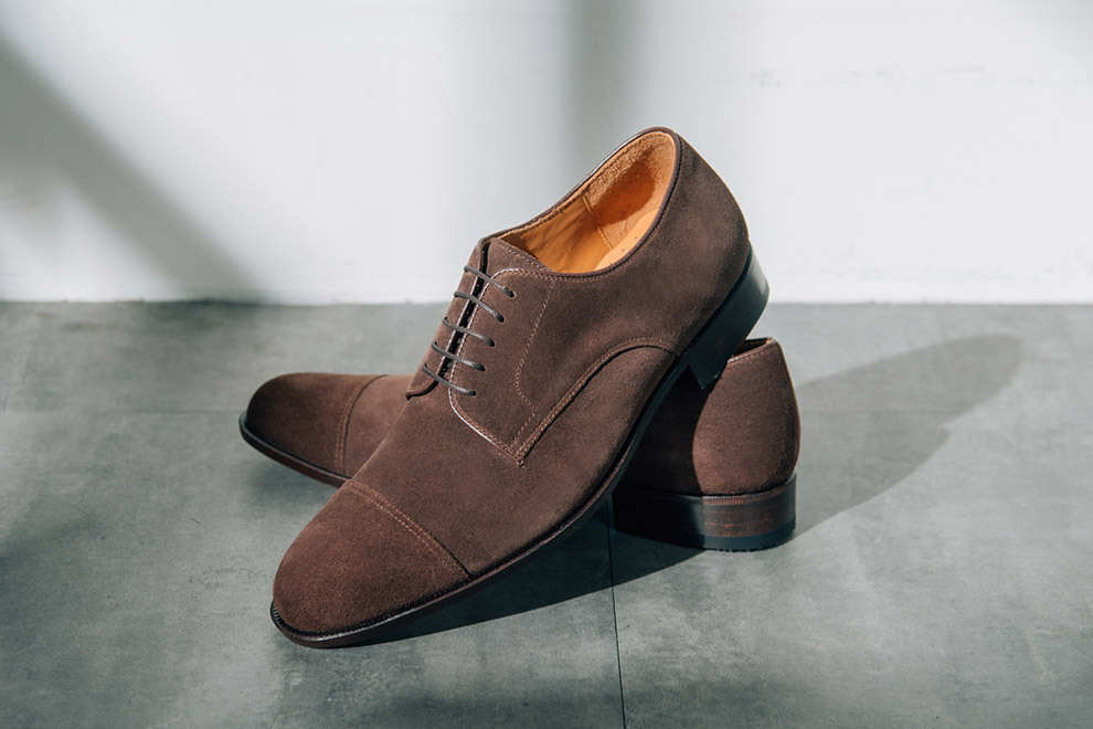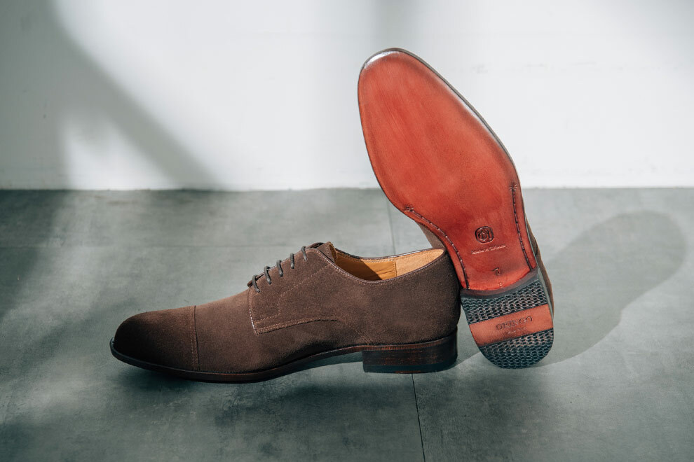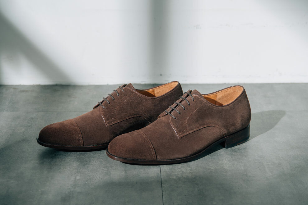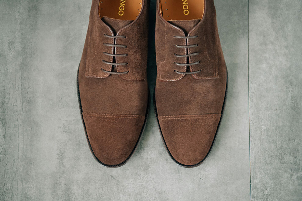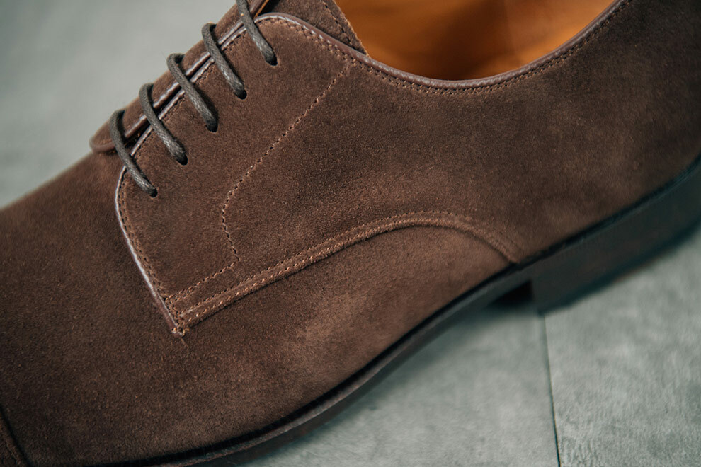 橫飾的正式程度僅次於無裝飾,在鞋面的設計當中,雕花越少,正式程度越高。德比鞋在紳士鞋當中是既正式又休閒,不論是在何種場合,都可以做出得宜的詮釋。加上開放式襟片能提供相對舒適的穿著感受,入腳更容易,也能降低腳背上的壓迫感。