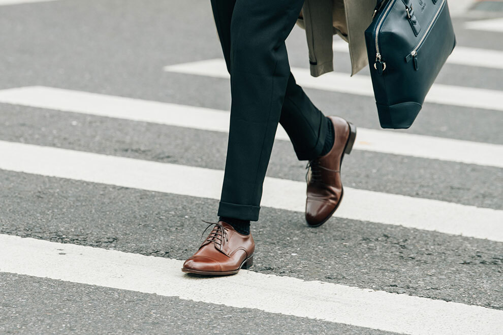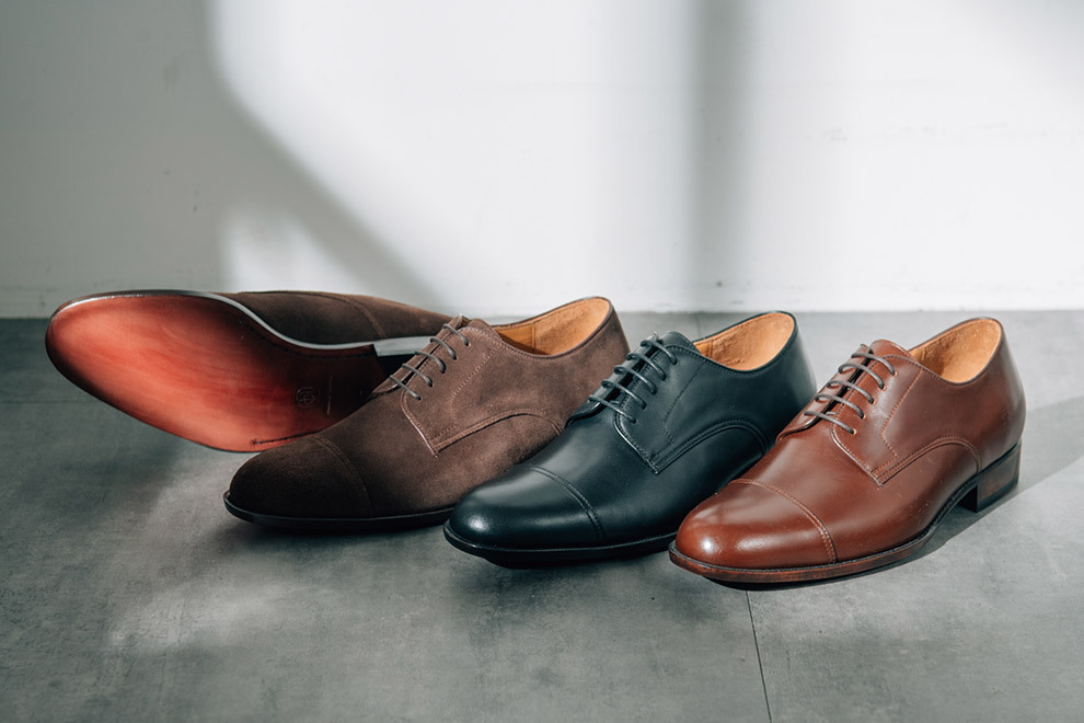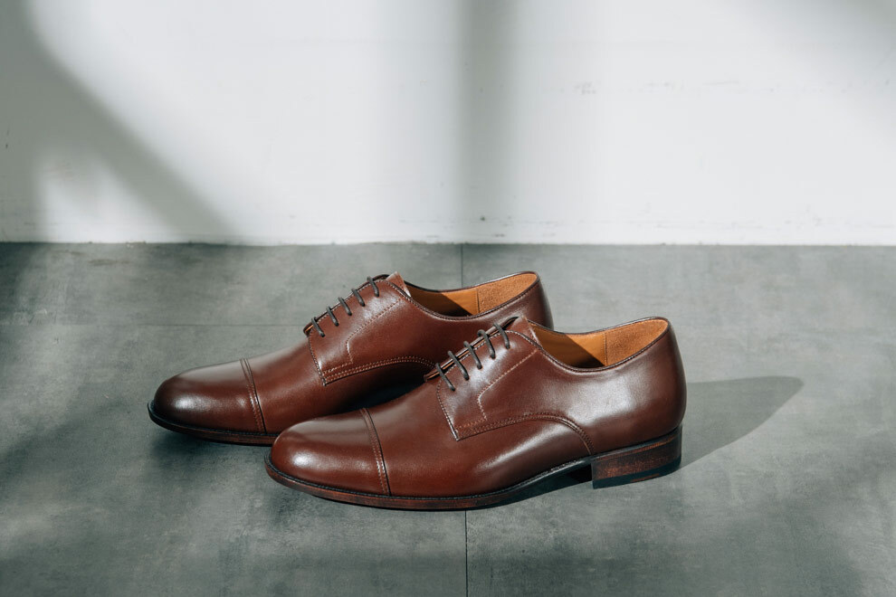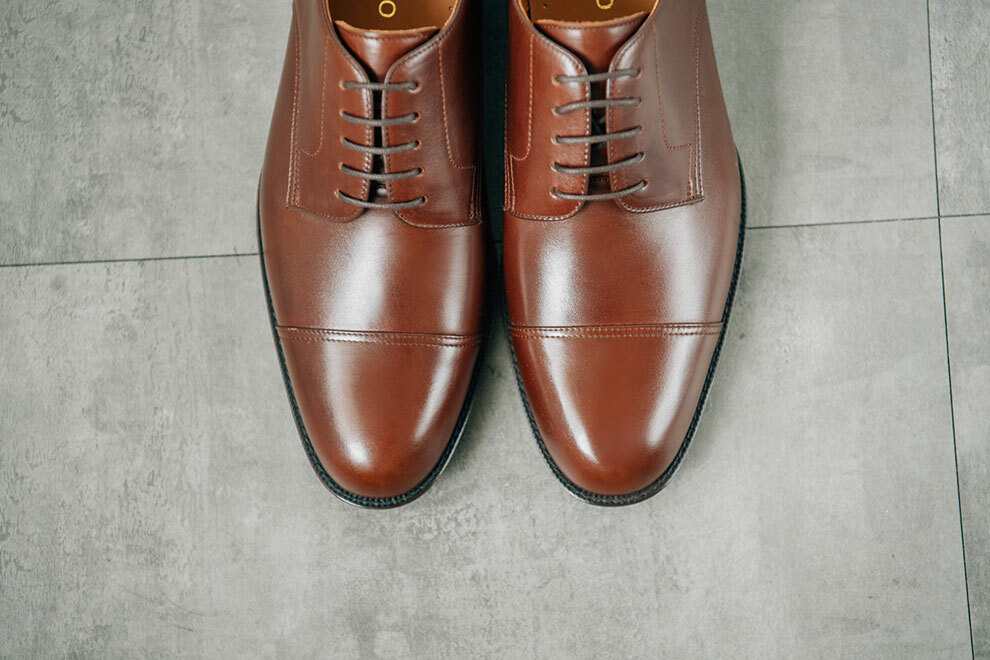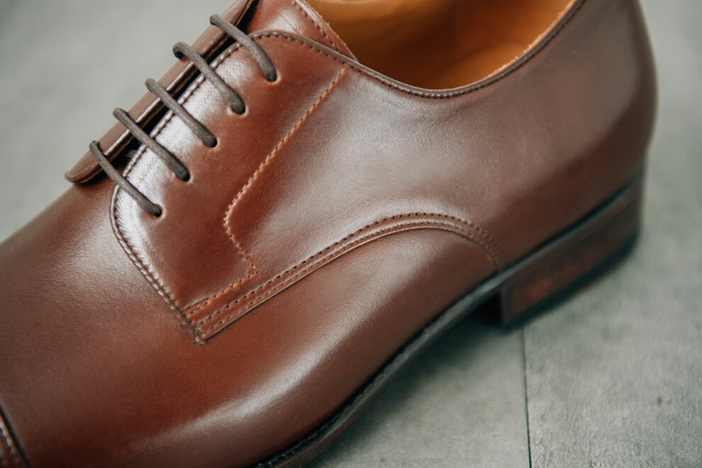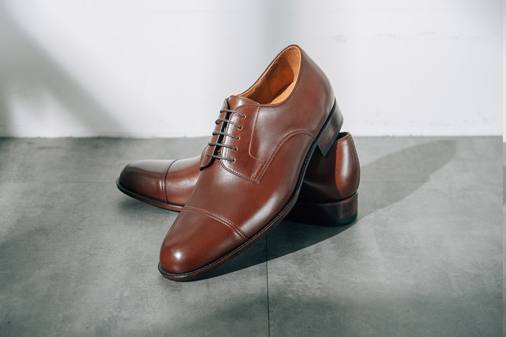 橫飾的正式程度僅次於無裝飾,在鞋面的設計當中,雕花越少,正式程度越高。德比鞋在紳士鞋當中是既正式又休閒,不論是在何種場合,都可以做出得宜的詮釋。加上開放式襟片能提供相對舒適的穿著感受,入腳更容易,也能降低腳背上的壓迫感。