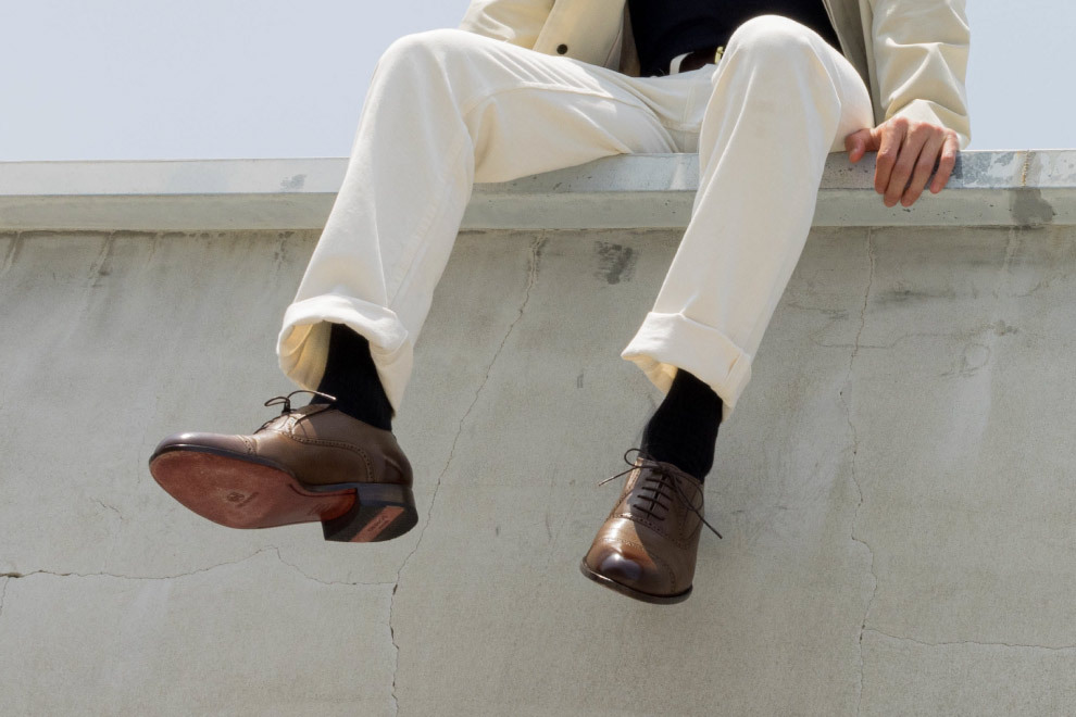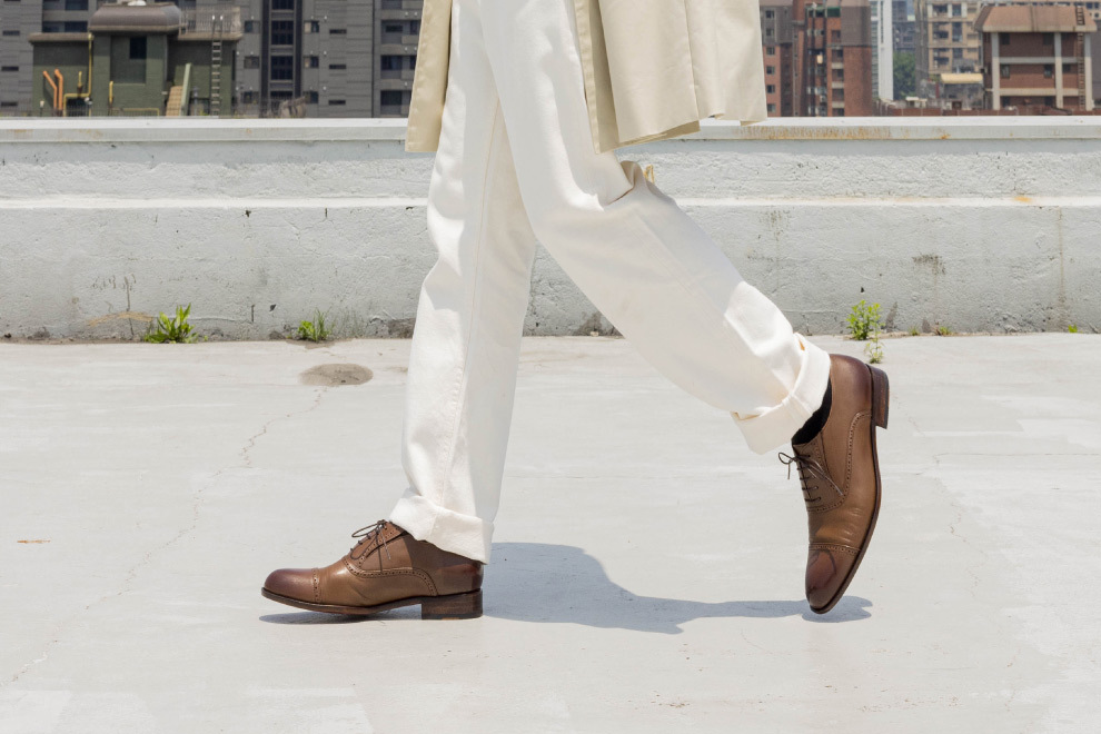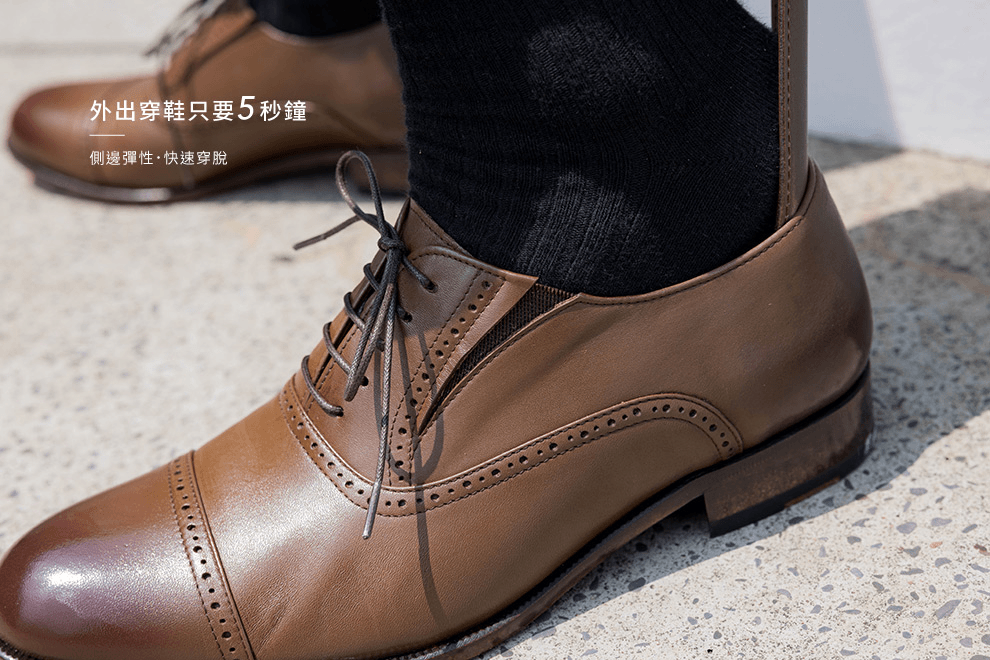 以「降低穿脫的繁雜性」為題,開始新的設計,加入容易穿脫的鬆緊帶元素,只要繫上一次鞋帶,使用鞋拔就能方便穿脫,減少鬆綁鞋帶的動作,做事更有效率,尤其適合不習慣穿著皮鞋的男士。半雕花的皮鞋非常適合休閒正式以及卡其褲的穿搭,對於台灣的職場環境中,是相對來說更廣泛穿著的皮鞋款式。