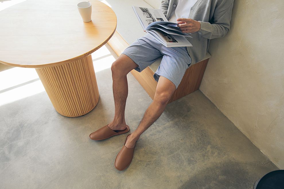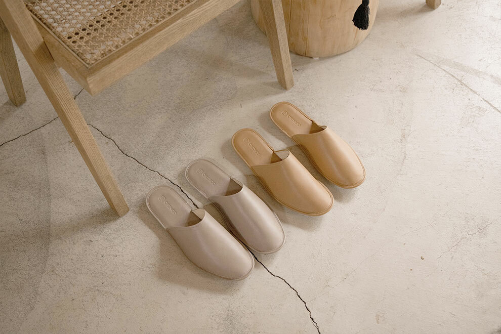 林果良品延續皮鞋製鞋工藝,將其精隨延伸至手工真皮拖鞋,極佳的包覆性以及柔軟的皮性,透氣、舒適,讓居家日常也具有生活的格調與品味。