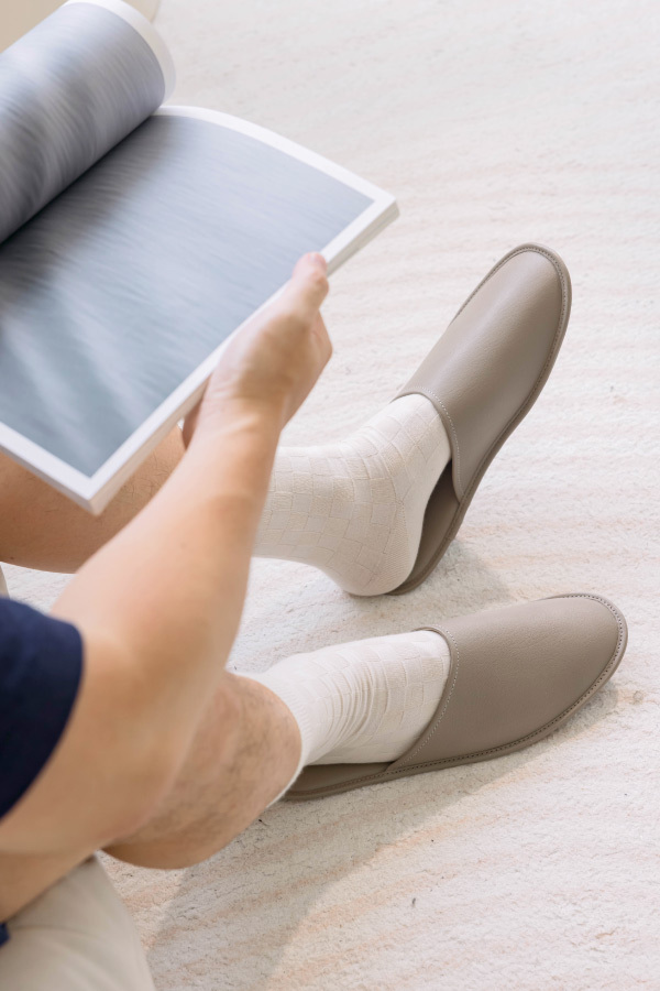 林果良品延續皮鞋製鞋工藝,將其精隨延伸至手工真皮拖鞋,極佳的包覆性以及柔軟的皮性,透氣、舒適,讓居家日常也具有生活的格調與品味。
