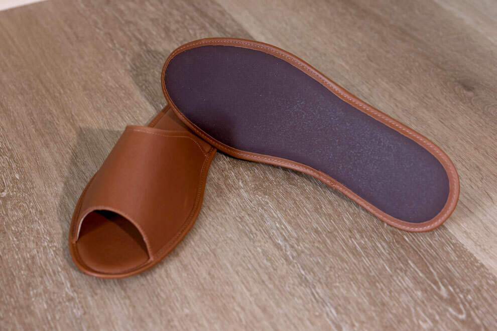 林果良品延續皮鞋製鞋工藝,將其精隨延伸至手工真皮拖鞋,極佳的包覆性以及柔軟的皮性,透氣、舒適,讓居家日常也具有生活的格調與品味。