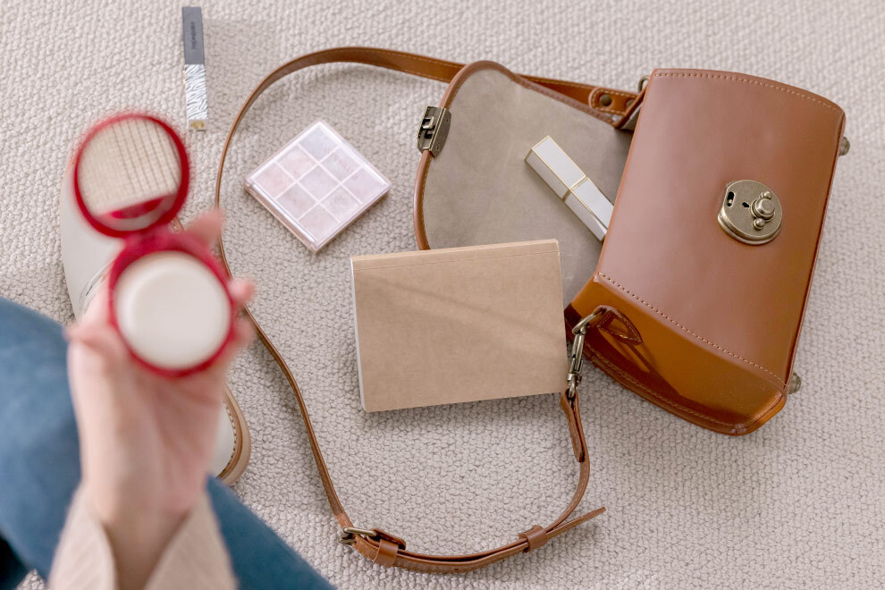 包身採用加厚材質支撐,保持挺括線條,同時方正造型增加收納空間,手帳、手機、補妝用品、鑰匙等都能整齊擺放。