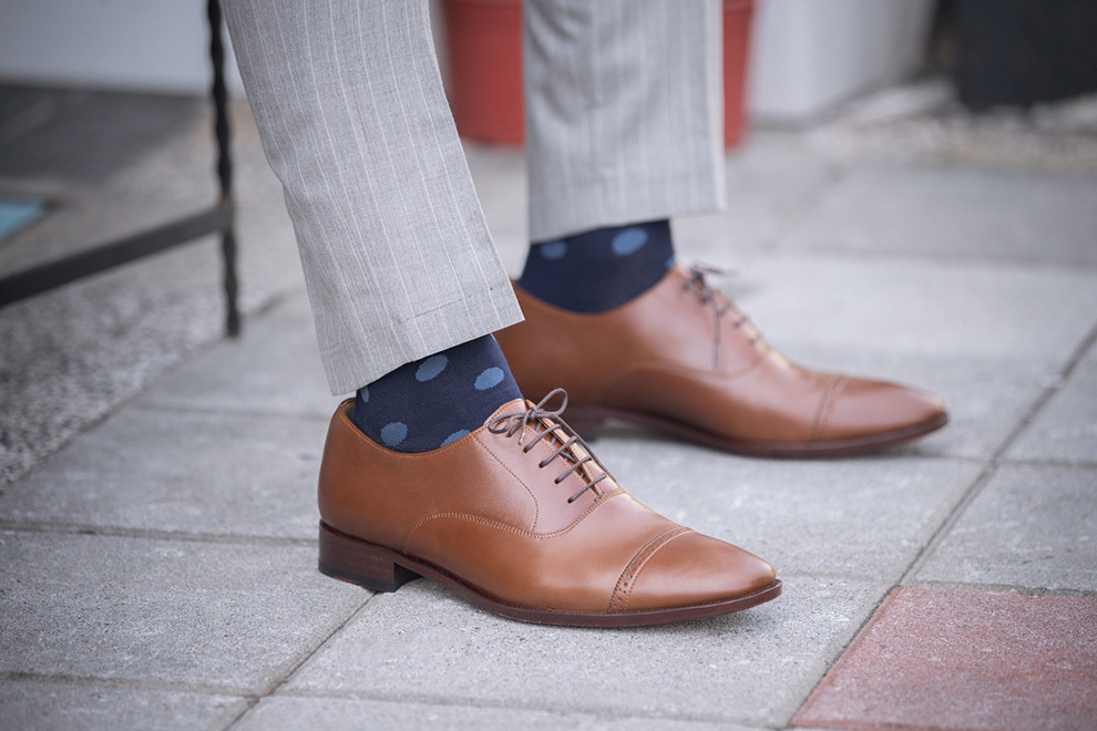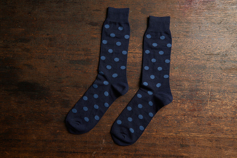 為了讓男裝穿搭中增添一點與眾不同,我們將波卡圓點結合到紳士襪,