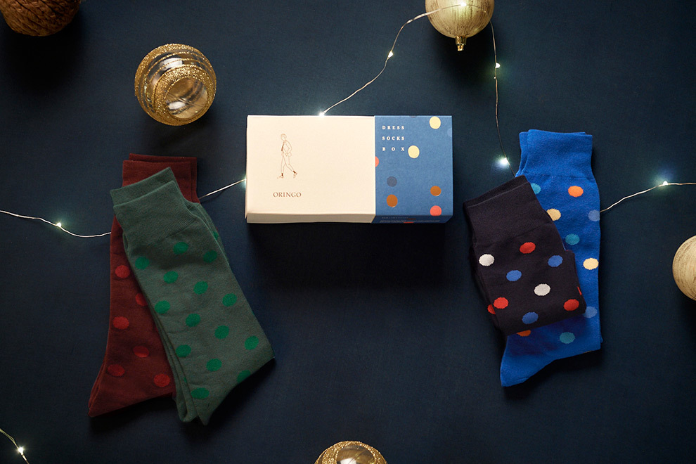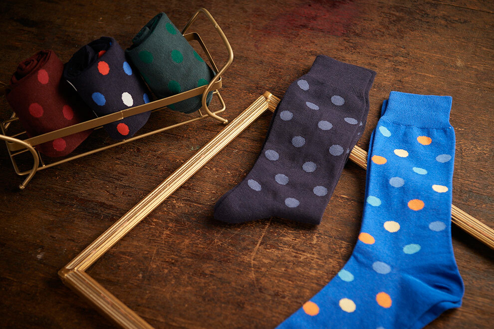 為了讓男裝穿搭中增添一點與眾不同,我們將波卡圓點結合到紳士襪,