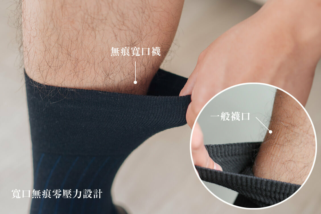 男士皮鞋的必備單品,就是一雙好穿的襪子,林果針對商務及上班族男士,打造舒服、透氣的無痕襪款,特殊的寬口設計、極簡黑色與藍色,搭配任何鞋款都不出錯,同時提供雙腳一整天的舒適。