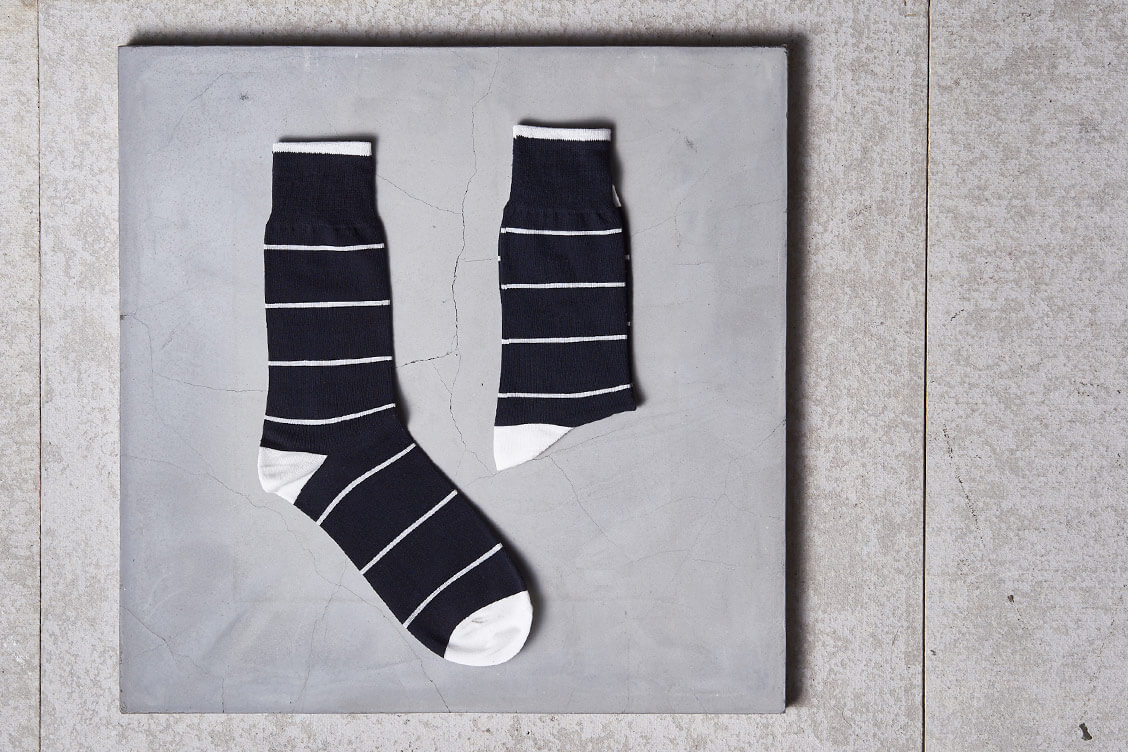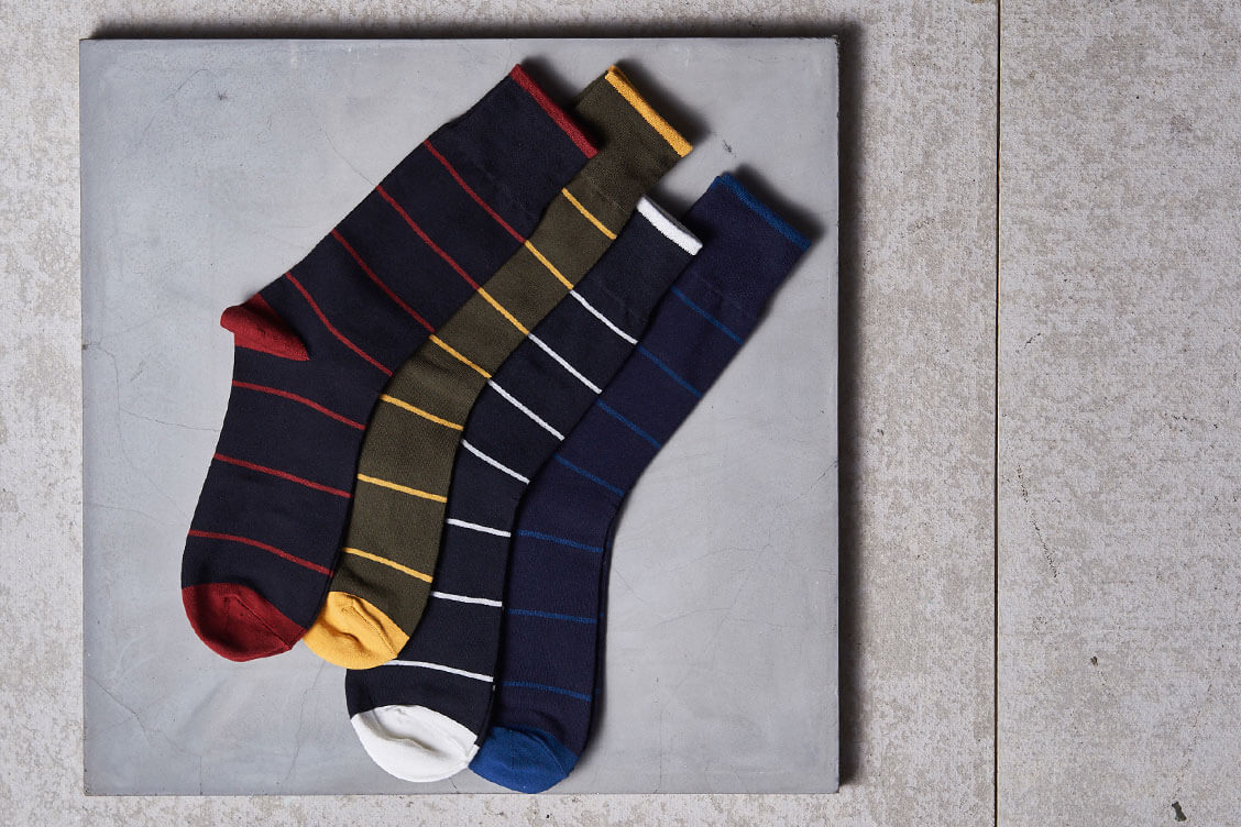 林果條紋襪款又一新作,利用沉穩配色與經典黃綠紅,搭配出極具紳感的水手條紋襪,穿不慣格紋、點點這類大膽的花樣,又穿膩了素面的黑色襪子,不如就用這樣極簡的條紋設計,為上班的裝束加入一點搭配的巧思,展現紳士日常的格調。