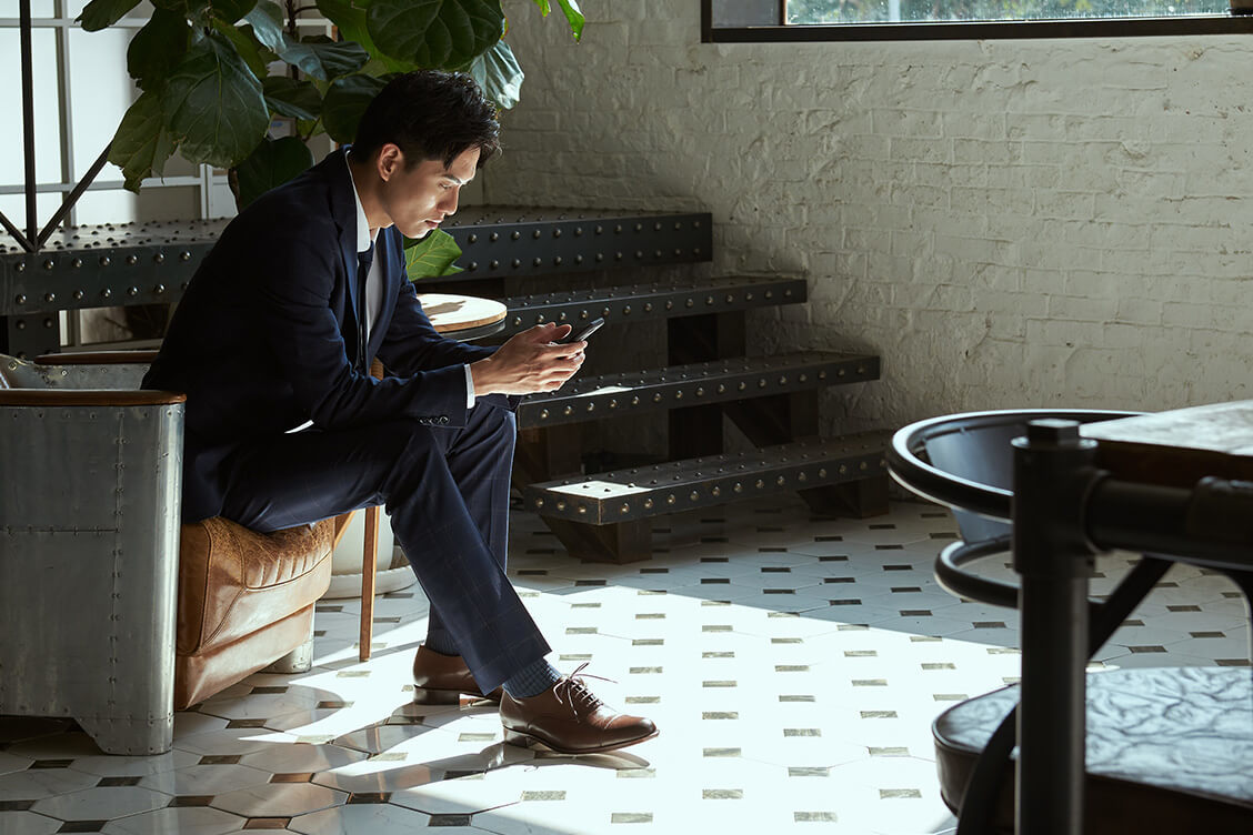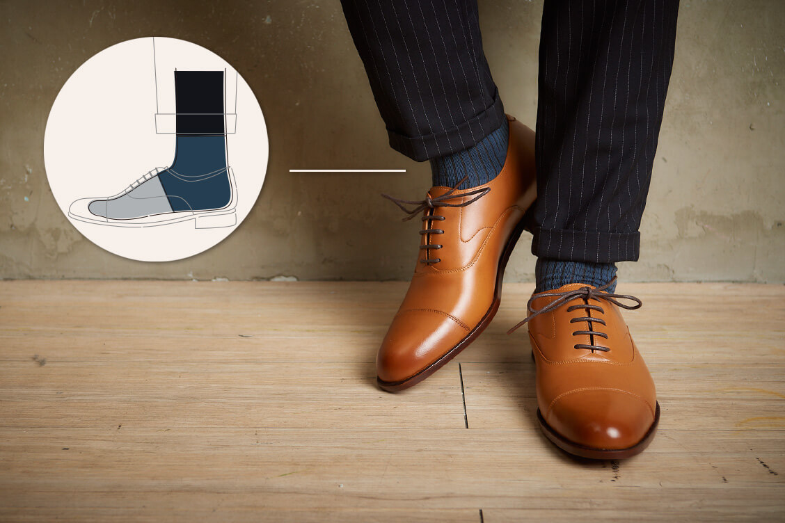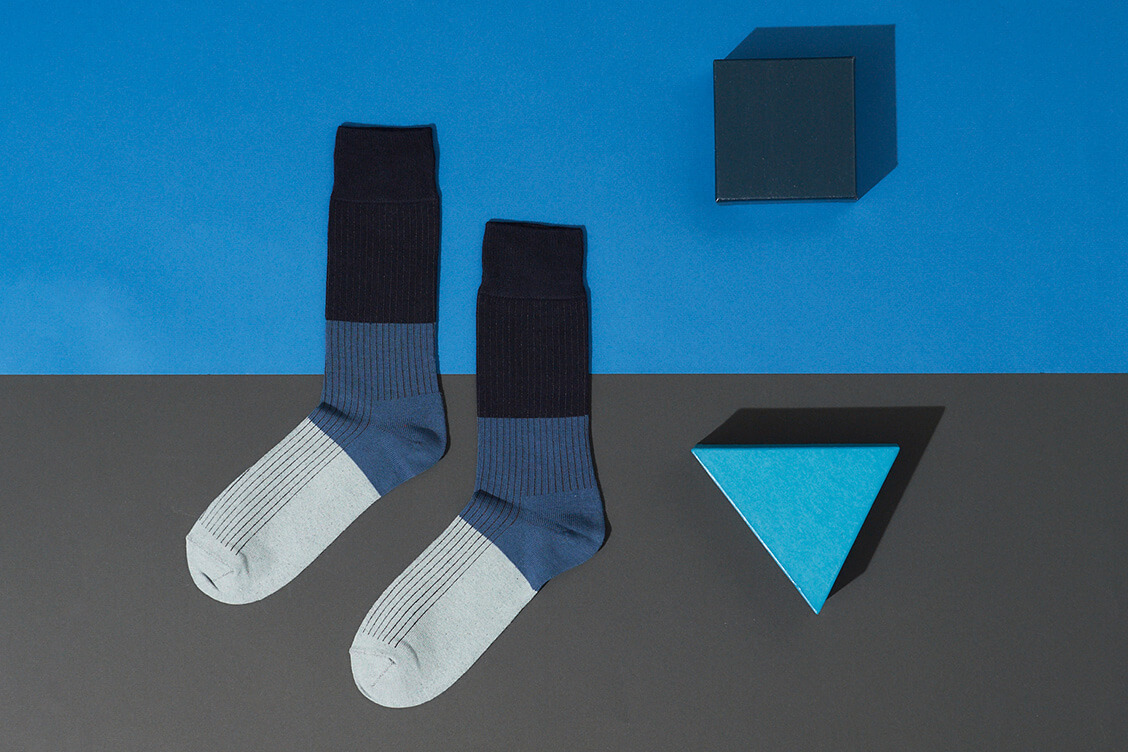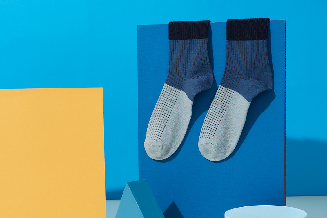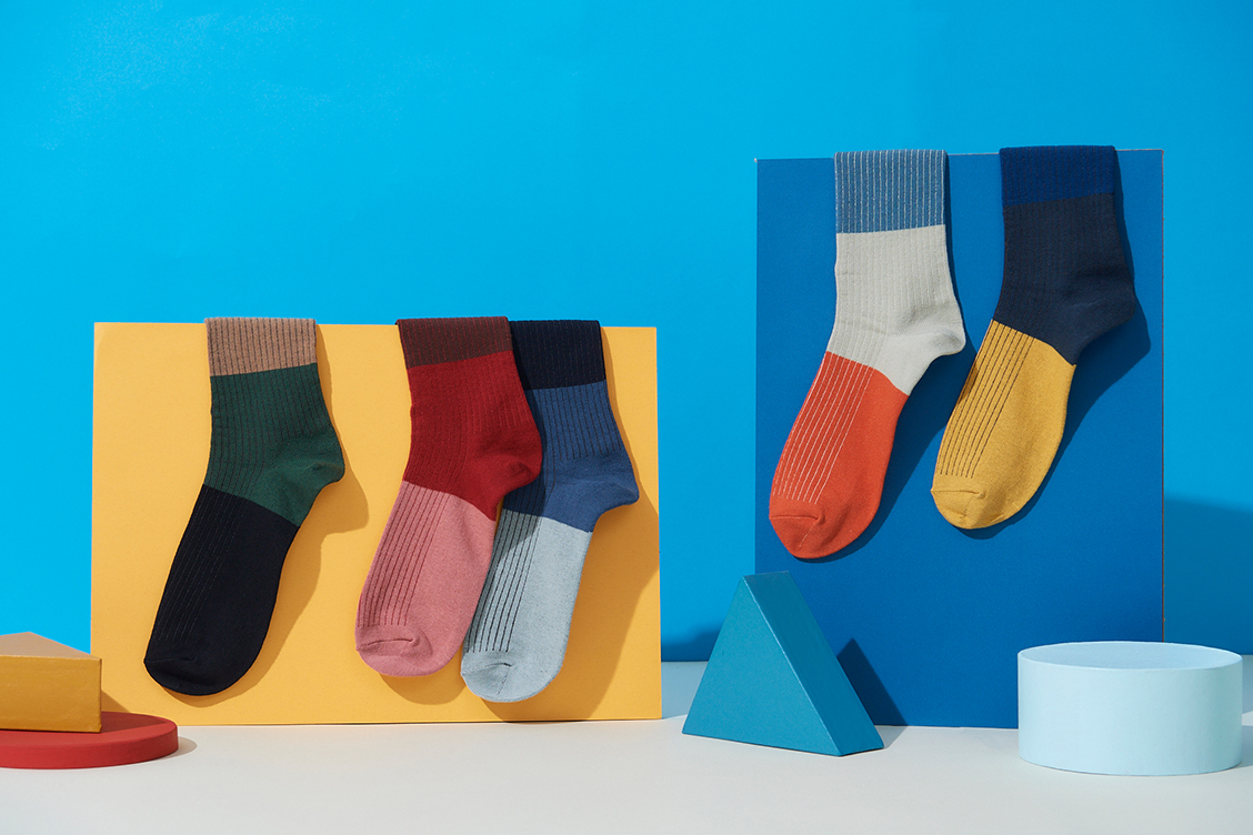 男士入門襪款的精彩撞色,羅紋織法的基本紋路搭上色塊拼接,創造出繽紛的視覺效果,利用襪子為西裝皮鞋穿搭創造細微低調的搭配巧思,是皮鞋穿搭時不可或缺的紳士襪選擇。