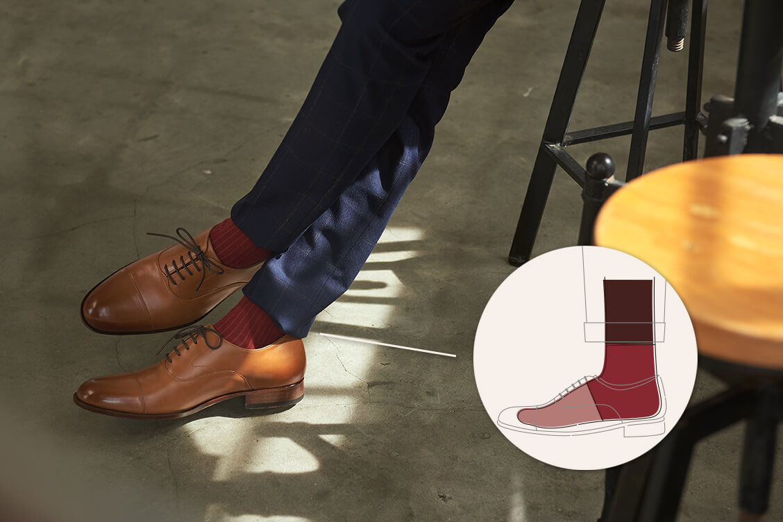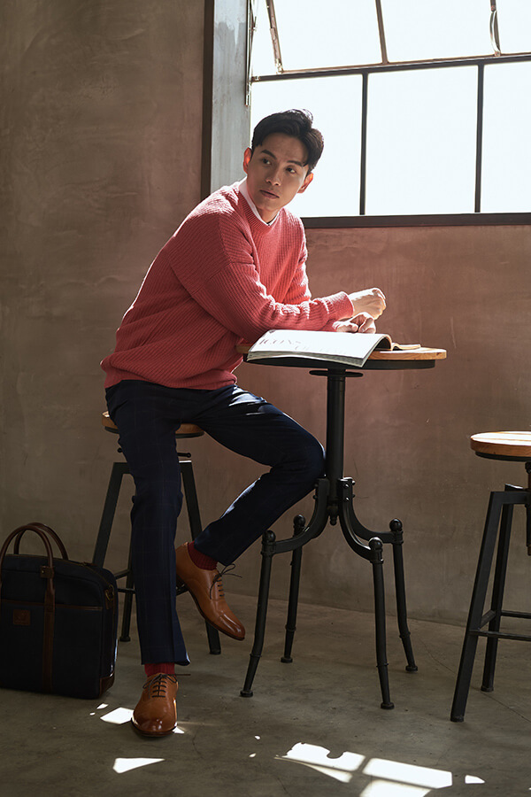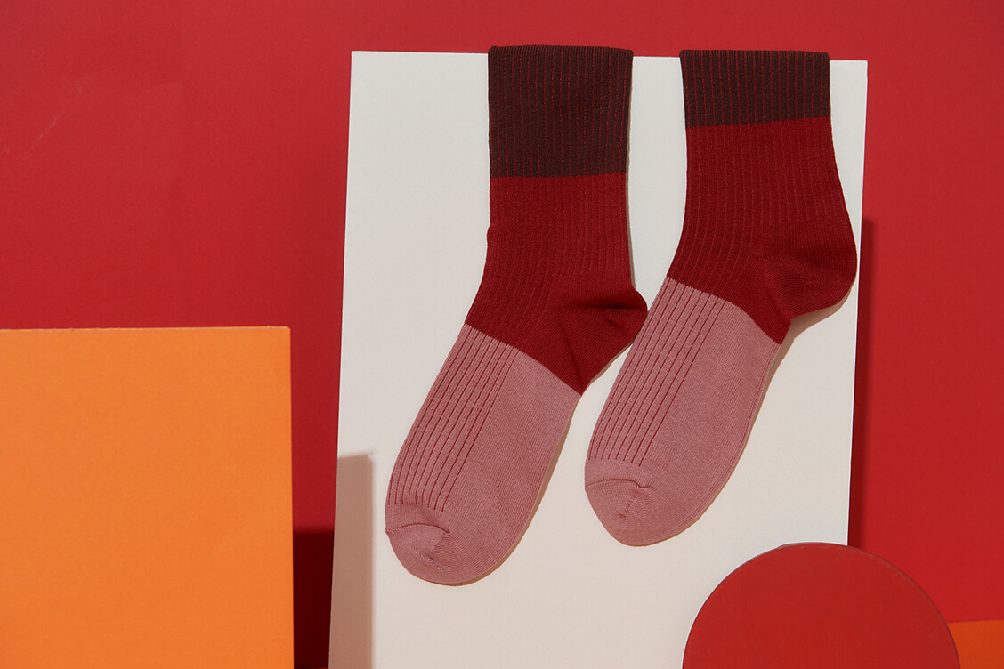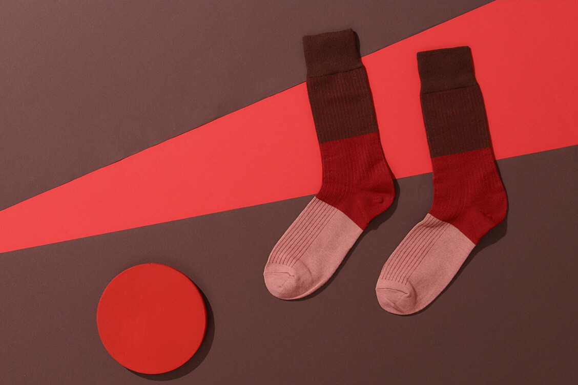 男士入門襪款的精彩撞色,羅紋織法的基本紋路搭上色塊拼接,創造出繽紛的視覺效果,利用襪子為西裝皮鞋穿搭創造細微低調的搭配巧思,是皮鞋穿搭時不可或缺的紳士襪選擇。