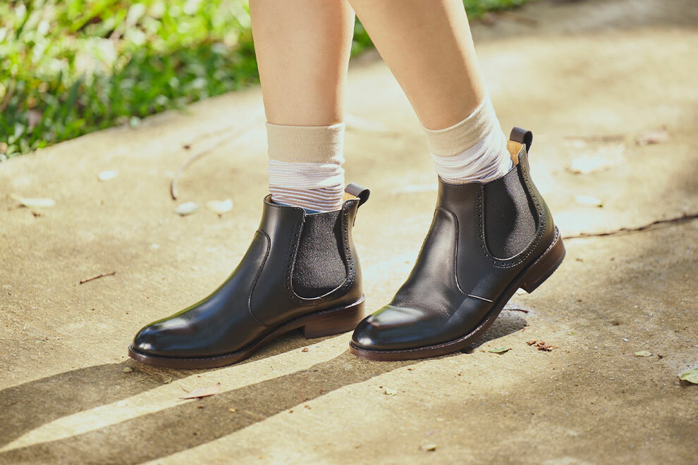 女生的卻爾喜靴,延續ORINGO W的皮革大底元素,展現細緻絲滑的質感,鬆緊帶兩側點綴雕孔,軟化卻爾喜靴較為剛硬的輪廓,多了一份女性獨有的細膩;黑色是最經典百搭的顏色,帥氣中帶著柔美的優雅。
