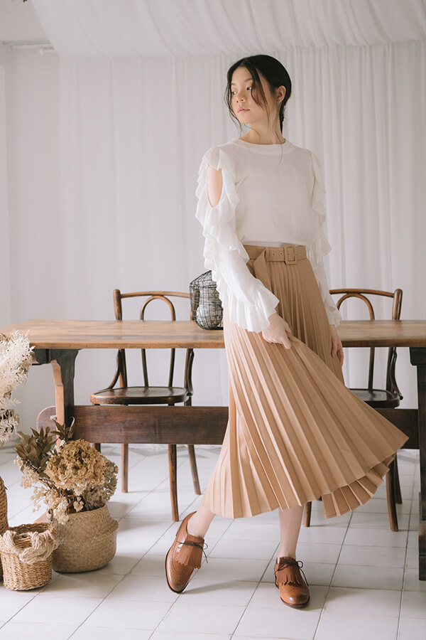 林果良品女鞋19年最新力作,以18世紀的洛可可風,在德比皮鞋鞋面蔓延出繁複的花紋,用雕花、長翼紋打造女生細緻華麗的風貌;最特別的是,附贈的Kiltie的真皮流蘇飾片,可拆式設計為穿搭提供更多可能,如花瓣般停駐在鞋翼上,散發浪漫復古的優雅氣質。