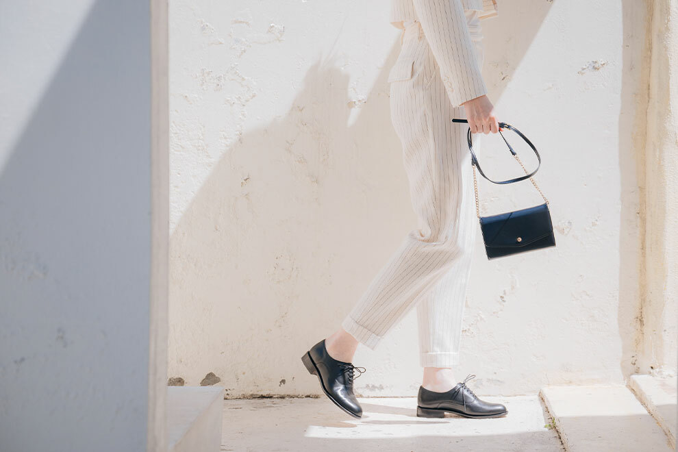 Plain toe的牛津鞋是非常指標性的正裝鞋,十分適合正式的商務場合上穿著,而女鞋上的搭配又更加廣泛,不繁複且簡潔的鞋面,能夠融合各式各樣的風格。ORINGO W延續林果的紳士皮鞋製鞋工藝,將紳士鞋修長、硬挺的輪廓注入女鞋,並同樣以亞洲女生腳型作為鞋型開發依據,承擔行走或站立一天的壓力,久穿也不易感到雙腳的不適。