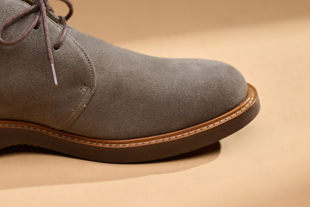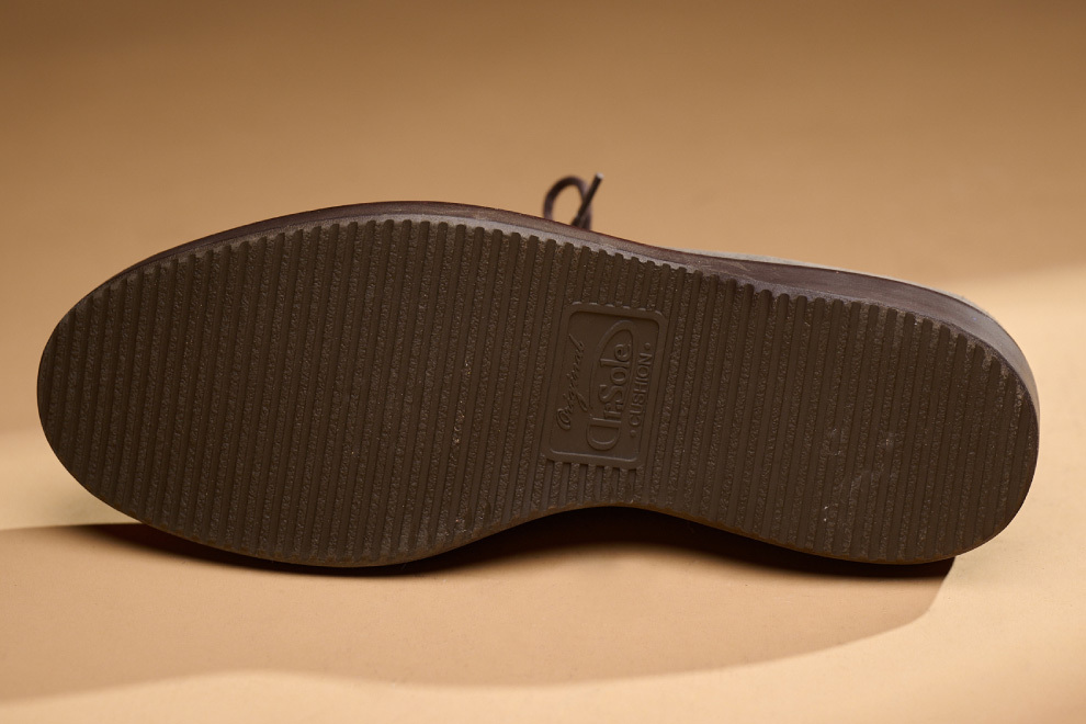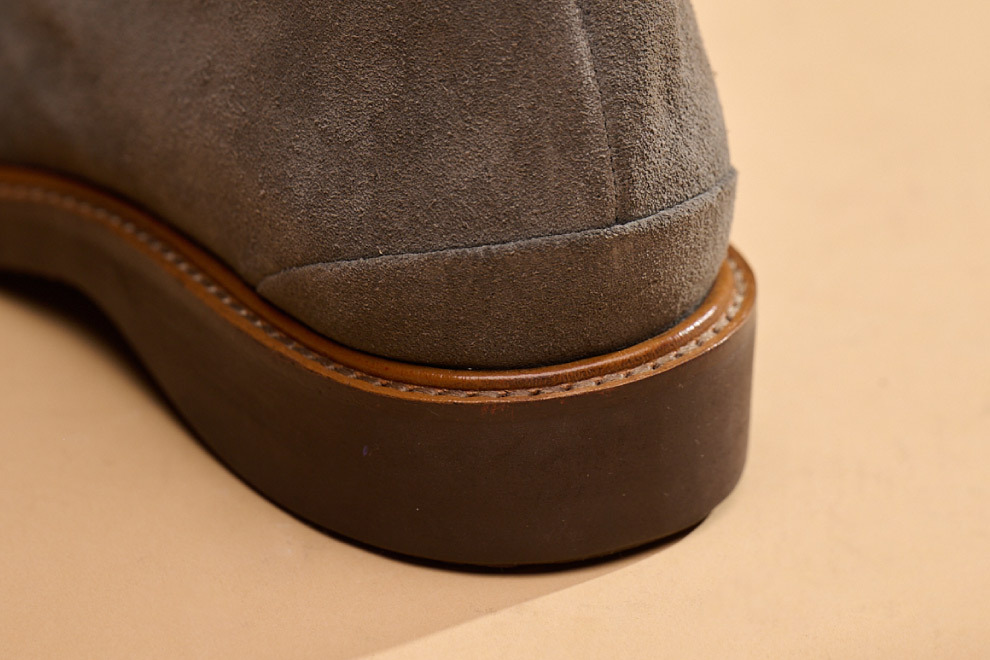 現代休閒鞋追求機能與時尚兼具,林果選用 Dr. Sole #3060 EVA 混合橡膠大底,提供輕量化、耐磨性與波浪紋設計,讓鞋款具備舒適與耐用性。經典的沙漠靴,在鞋襟的部位逢上同面色的馬克線,從經典中凸顯出不一樣的設計,搭配撞色效果的沿條色系讓款式在經典中有另類的與眾不同。